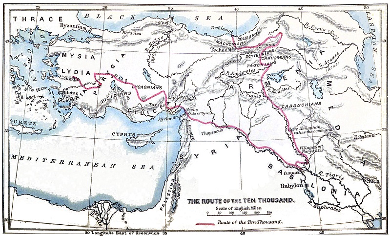 ‘Nothing,’ a famous Frenchman, M. Henri Taine, has remarked in one of his essays entitled Xénophon, ‘is more singular than this Greek army—which is a kind of roving commonwealth, deliberating and acting, fighting and voting: an epitome of Athens set adrift in the centre of Asia: there are the same sacrifices, the same assemblies, the same party strifes, the same outbursts of violence; to-day at peace and to-morrow at war; now on land and again on shipboard; every successive incident serves but to evoke the energy and awaken the poetry latent in their souls.’