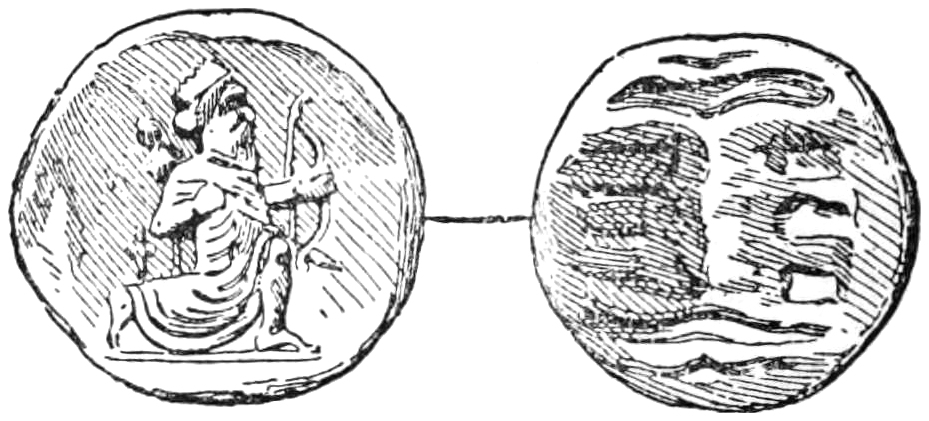 Here Xenophon built a temple to Artemis, and planted around it a grove of many kinds of fruit-trees; and in the temple he placed an altar, and an image of the goddess. The temple was like the temple at Ephesus, only far smaller, and the image was like the image at Ephesus, but instead of being made of gold, it was of cypress-wood. Lastly he set up a column near the temple, and on it this inscription:—‘This place is sacred to Artemis. He who lives here and enjoys the fruits of the ground must every year offer the tenth part of the produce to the goddess, and out of the residue keep the temple in repair. Should he neglect this duty, the goddess will remember it against him.’