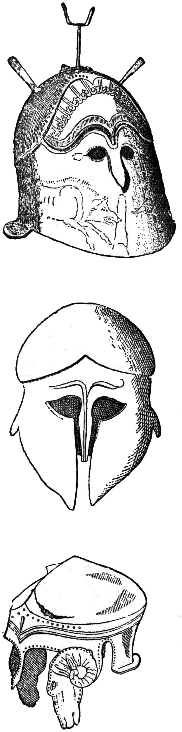 When they went out to fight, the Chalybeans wore a cuirass made of many folds of linen, with a thick fringe at the bottom, of twisted cords. They wore also greaves and helmet, and carried a spear twenty-two feet in length, and a short curved sword, with which they cut off the heads of their fallen enemies. These they carried about, singing and dancing, and displayed them to the foe with horrible delight.