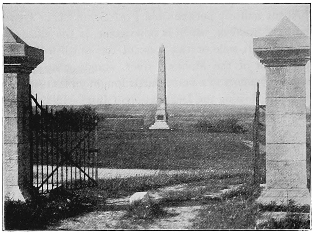 John Sevier, too, had more honors than those of a noble soldier. In front of the courthouse at Knoxville is a plain stone monument raised in his memory (Fig. 64), and down a side street is an old dwelling, said to be an early statehouse of the commonwealth which is still associated with his name. In 1785 the state of “Franklin” was organized and named in honor of the illustrious Benjamin; but North Carolina, being heartily opposed to the whole proceeding, put an end to it without delay. Sevier, as governor of the would-be state, was imprisoned, but escaped, to the delight of his own people, who were always loyal to him. They sent him to Congress in a few years and in 1796 made him the first governor of Tennessee. He enjoyed many honors until his death in 1815, which came soon after that of his more quiet friend, James Robertson. Both of these wilderness men had much to do with planting the American flag between the Appalachian mountains and the Mississippi river.
