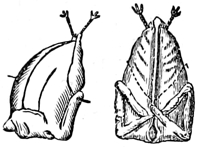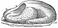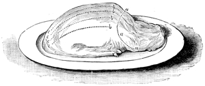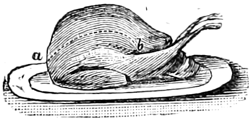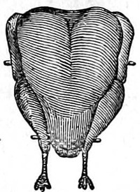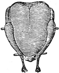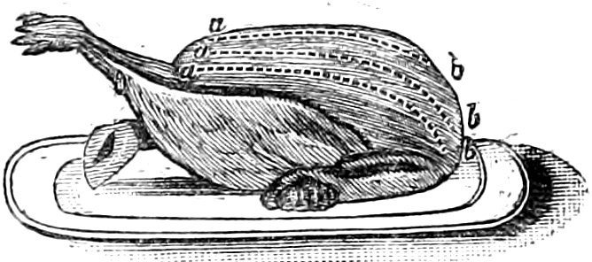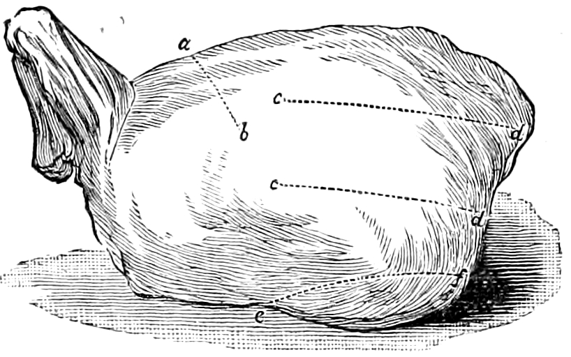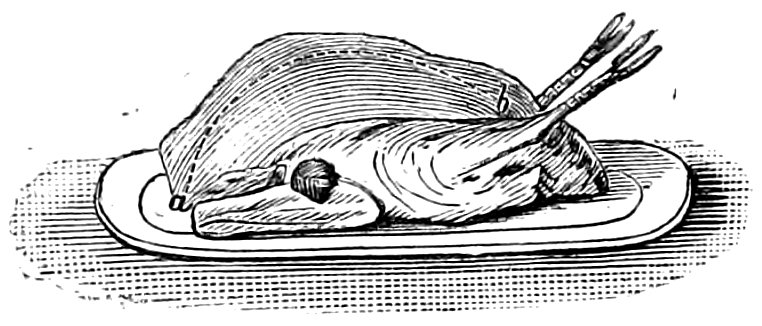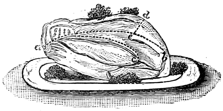 Obs.—The breast without the gristles, boned and filled with forcemeat, makes a superior roast. It may also be boiled on occasion, and served with balls of oyster-forcemeat in the dish; or with white mushroom-sauce instead.