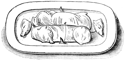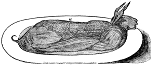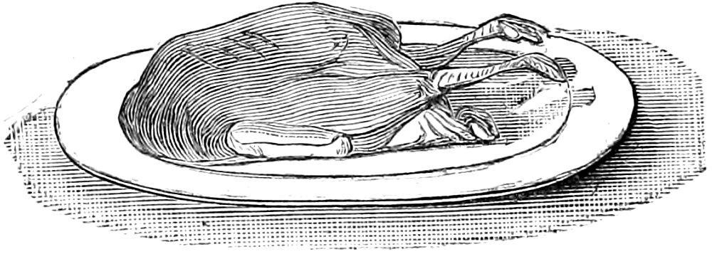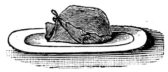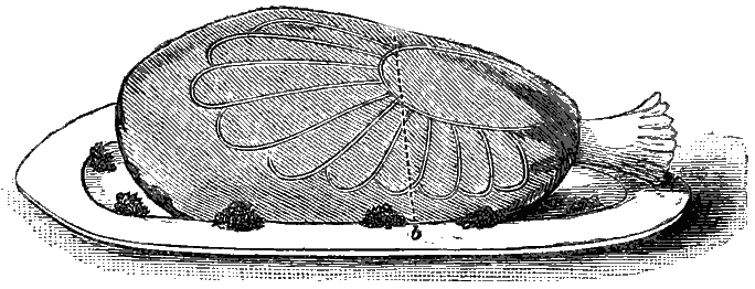 Obs.—As every cook may not be quite aware of the articles of food strictly prohibited by the Mosaic law, it may be well to specify them here. Pork in every form; all varieties of shell-fish, without exception; hares, rabbits, and swans.