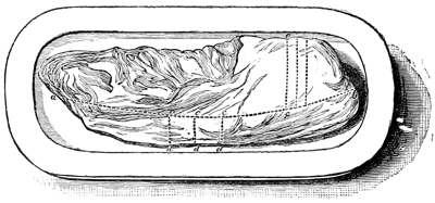 This bread, in which carbonate of soda and muriatic acid are substituted for yeast or other leaven, has within these few years been highly recommended, and much eaten. It may possibly suit many persons better than that which is fermented in the usual way, but it is not in general by any means so pleasant in flavour; and there is much more chance of failure in preparing it in private families, as it requires some skill to mix the ingredients with exactness and despatch; and it is absolutely necessary that the dough should be set into the oven the instant it is ready. In some hydropathic and other large 600establishments, where it is always supplied to the table in lieu of the more common kinds, it is, we have been informed by patients who had partaken of it there for many months together, exceedingly and uniformly good. More detailed information with regard to it, will be found in our “Cookery for Invalids,” a work for which our want of space in the present volume compels us to reserve it.
