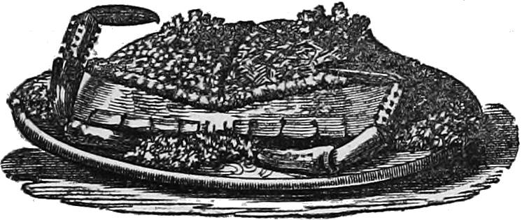 A really excellent and elegant receipt for lobster-cutlets has already been given in previous editions of the present work, and is now to be found at page 91 of Chapter III.; but the subjoined is one which may be more readily and expeditiously prepared, and may consequently, be preferred by some of our readers for that reason: it has also the recommendation of being new. In India, these cutlets are made from the flesh of prawns, which are there of enormous size, but lobsters, unless quite overgrown, answer for them as well, or better. Select fish of good size and take out the tails entire; slice them about the third of an inch thick, dip them into beaten egg, and then into very fine crumbs of bread seasoned rather highly with cayenne, and moderately with salt, grated nutmeg, and pounded mace. Egg and crumb them twice, press the bread upon them with the blade of a knife, and when all are ready, fry them quickly in good butter to a light brown. Serve them as dry as possible, arranged in a chain round a hot dish, and pour into the centre, or send to table with them in a tureen, some sauce made with the flesh of the claws heated in some rich melted butter, flavoured with a tablespoonful of essence of anchovies, one of strong chili vinegar, a little salt and mace, and coloured with the coral of the fish, should they contain any. A few shrimps may be added with good effect; or the sauce may be made of these entirely, either whole or pounded, when they are preferred. In either case, they should only be heated 611in it, and not allowed to boil. East or West Indian mangoes, or other hot pickle, should accompany the dish. The cutlets may likewise be dipped into light French batter, and fried; but the egg and bread-crumbs are somewhat preferable. It is an advantage to have lobsters little more than parboiled for them. Herbs can be added to the crumbs at pleasure; the writer does not, however, recommend them.