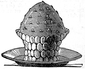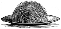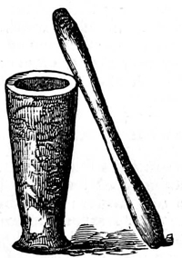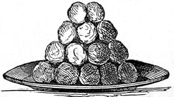 The composition of these favourite oriental sauces varies but little except in the ingredient which forms the basis of each. The 610same piquant or stimulating auxiliaries are intermingled with all of them in greater or less proportion. These are, young onions, chilies (sometimes green ginger), oil, vinegar, and salt; and occasionally a little garlic or full grown onion, which in England might be superseded by a small portion of minced eschalot. Green peaches, mangoes, and other unripe fruits, crushed to pulp on the stone roller, shown at the head of this chapter; ripe bananas, tomatas roasted or raw, and also reduced to a smooth pulp; potatoes cooked and mashed; the fruit of the egg-plant boiled and reduced to a paste; fish, fresh, salted, or smoked, and boiled or grilled, taken in small fragments from the bones and skin, and torn into minute shreds, or pounded, are all in their turn used in their preparation.[190] Mingle with any one of these as much of the green onions and chilies chopped up small, as will give it a strong flavour; add salt if needed, and as much olive oil, of pure quality, with a third as much of vinegar, as will bring it to the consistence of a thick sauce. Serve it with currie, cutlets, steaks, pork, cold meat, or fish, or aught else to which it would be an acceptable accompaniment.