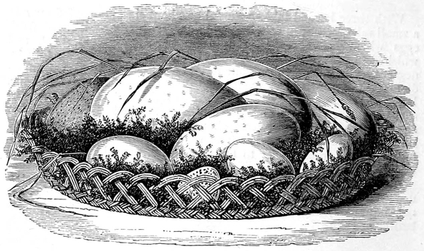 Whisk up very lightly, after having cleared them in the usual way, five fine fresh eggs; add to them two dessertspoonsful of milk or cream, a small teaspoonful of salt, one—or half that quantity for 612English eaters—of cayenne pepper, three of minced mint, and two dessertspoonsful of young leeks, or of mild onions chopped small. Dissolve an ounce and a half of good butter in a frying-pan about the size of a plate, or should a larger one of necessity be used, raise the handle so as to throw the omlet entirely to the opposite side; pour in the eggs, and when the omlet, which should be kept as thick as possible, is well risen and quite firm, and of a fine light brown underneath, slide it on to a very hot dish, and fold it together “like a turnover,” the brown side uppermost: six or seven minutes will fry it. This receipt is given to the reader in a very modified form, the fiery original which we transcribe being likely to find but few admirers here we apprehend: the proportion of leeks or onions might still be much diminished with advantage:—“Five eggs, two tolahs of milk, one masha of salt, two mashas of cayenne pepper, three of mint, and two tolahs of leeks.”