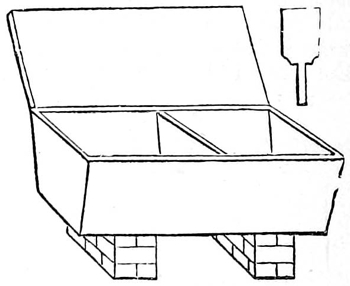 Bread requires almost as much care as milk to preserve it wholesome and fresh. It should be laid, as soon as it is perfectly cold, into a large earthen pan with a cover, which should be kept free from crumbs, and be frequently scalded, and then wiped very dry for use. Loaves which have been cut should have a smaller pan appropriated to them, and this also should have the loose crumbs wiped from it daily. It is a good plan to raise the bread-pans from the floor of the larder, when there is no proper stand or frame for the purpose, by means of two flat wedges of wood, so as to allow a current of air to pass under them.