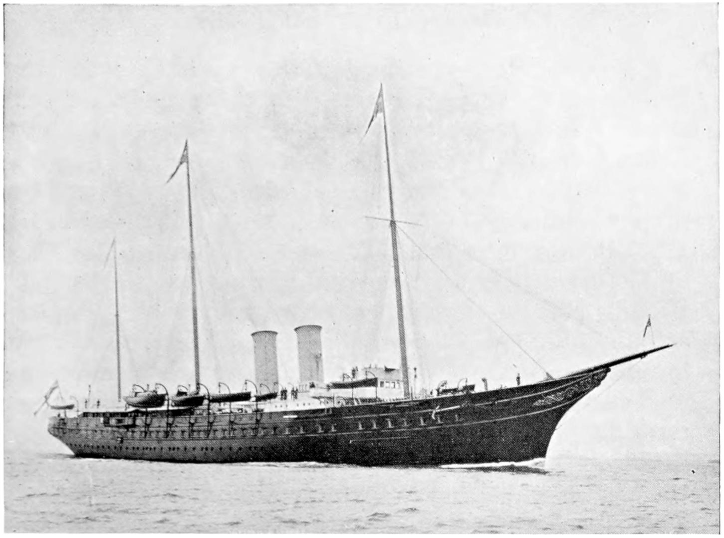 It is only fitting that the finest Royal yachts afloat intended purely for pleasure purposes should be at the disposal of the monarch of the leading maritime nation, and the latest Royal yachts built for the late King Edward merit this description. They are the present Victoria and Albert and the Alexandra, the latter built in 1908. Other modern Royal yachts of note are the German Emperor’s Hohenzollern, which is heavily armed and can be utilised as a fast cruiser if necessary, and the Russian Pole Star and Standart.