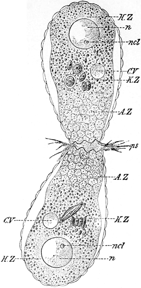 Teilung. — Beschreibung der dabei stattfindenden karyokinetischen Vorgänge.