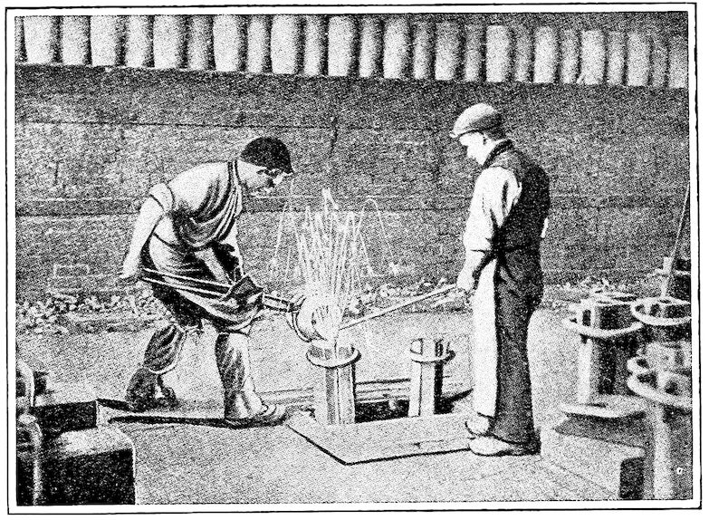 No matter how we try, probably none of us ever realizes the immensity and importance of the iron and steel industry with approximately 460 huge blast furnaces here, 5000 cast and malleable iron foundries, about 1000 Bessemer and open-hearth steel and some 3000 puddling furnaces, and the many thousands of factories which each day are turning the products of these into rails, plate, wire, pipe, and the infinitude of finished articles which enter into and are mighty factors of our civilization. Yet with these furnaces, forges and factories at our very doors, 99.9 per cent of us are entirely oblivious to their wonders and to their presence except to be annoyed by their noise and smoke. Even the blacksmiths and their service we scarcely note, though they are daily fashioning for us a material which is vastly more important and more wonderful than any of the “Seven Wonders of the World.”
