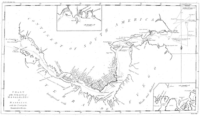 Opposite Bay Duclos, there is a prodigious inlet in Terra del Fuego; which I suspect to be a channel, disemboguing eastward of Cape Horn. Cape Monmouth forms the north point of it.