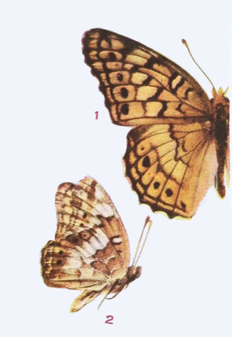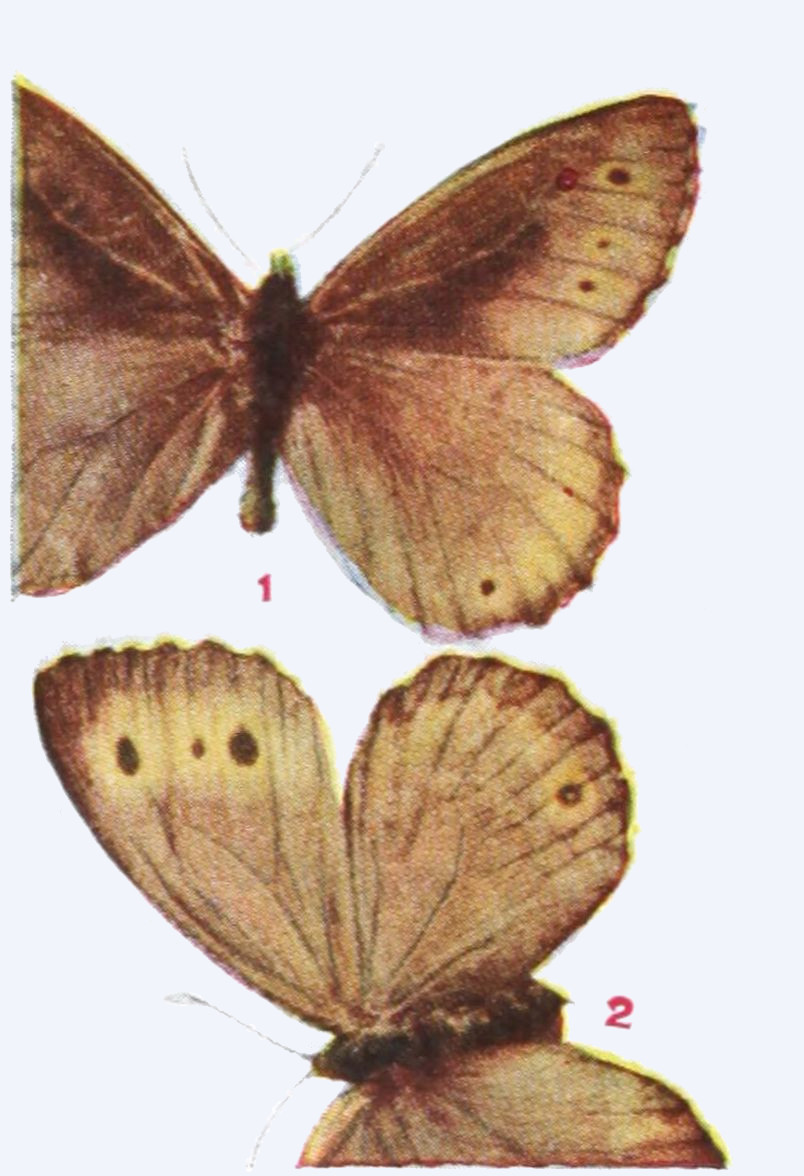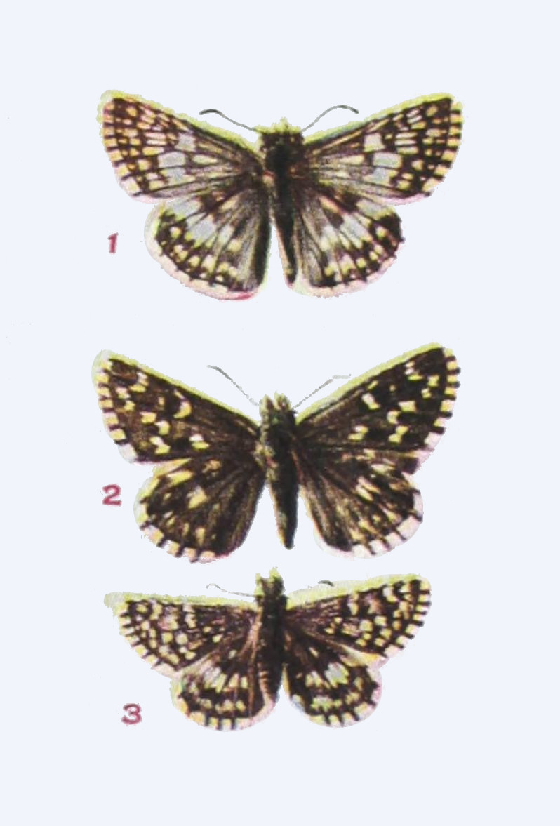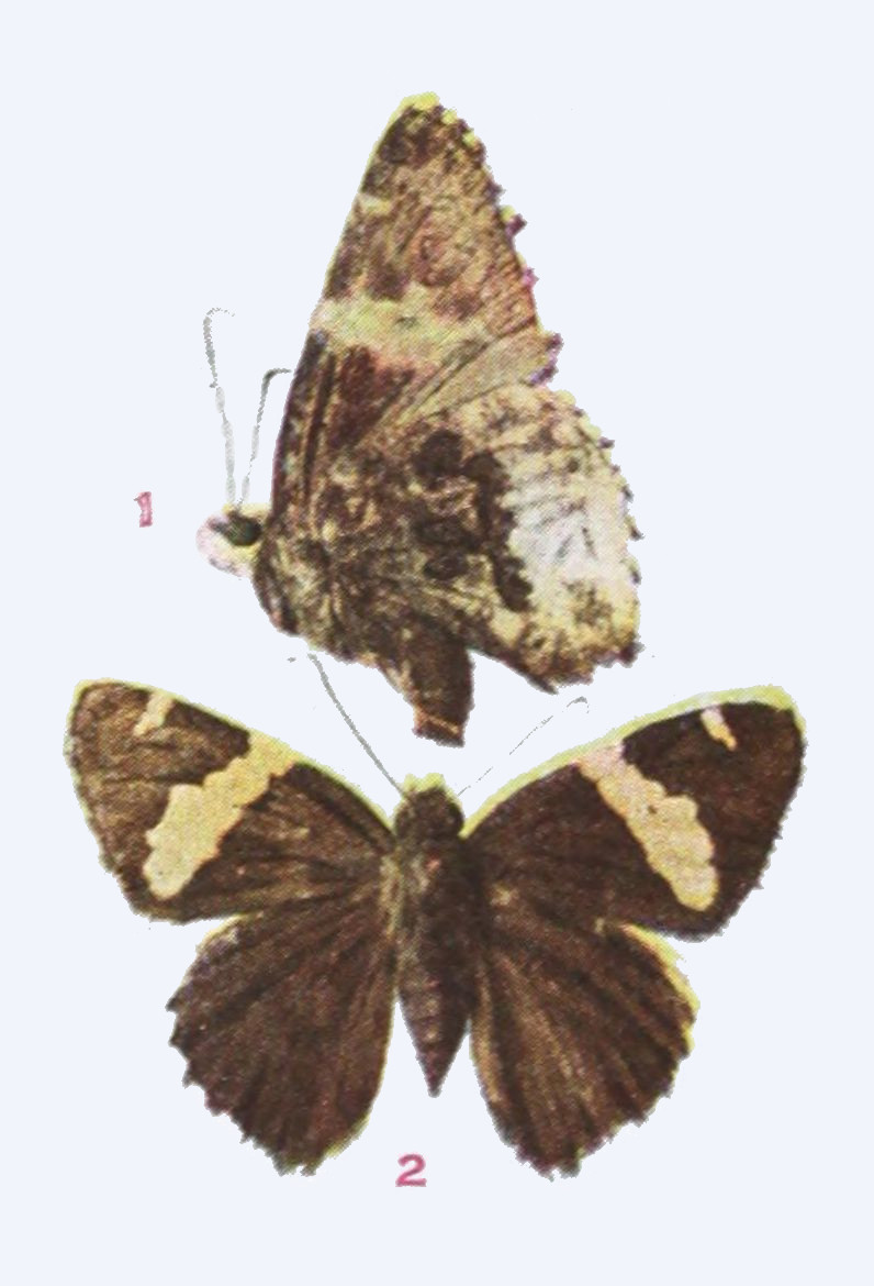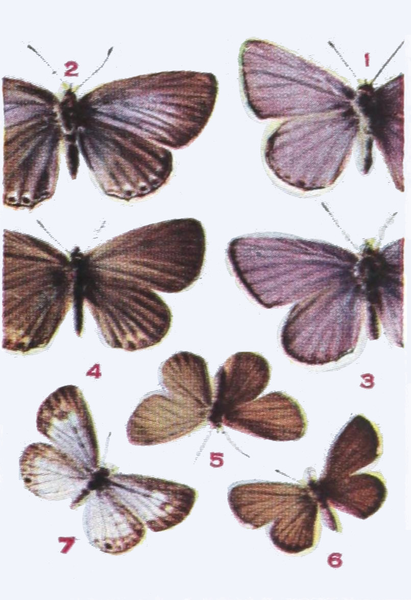 The time spent by the insect in the egg is generally short. The time passed in the larval state may be short or long. When butterflies hibernate, or pass the winter, as caterpillars, the time spent in this state is long, and especially in the case of those species which inhabit arctic regions. There are some butterflies which occur north of the Arctic Circle, and we have ascertained that these, because the summers are so short in the far north, pass two summers and the intervening winter in the larval condition, and another winter in the pupal stage, before they emerge and take wing. On the other hand, under more temperate conditions butterflies of[34] certain species may produce two or even three broods in a summer, and in subtropical or tropical lands there may be even more broods produced.
