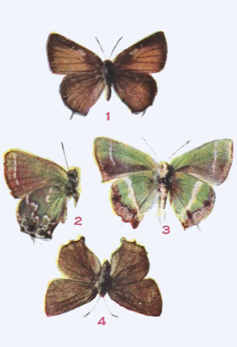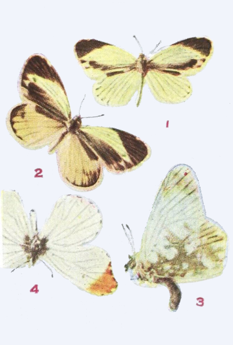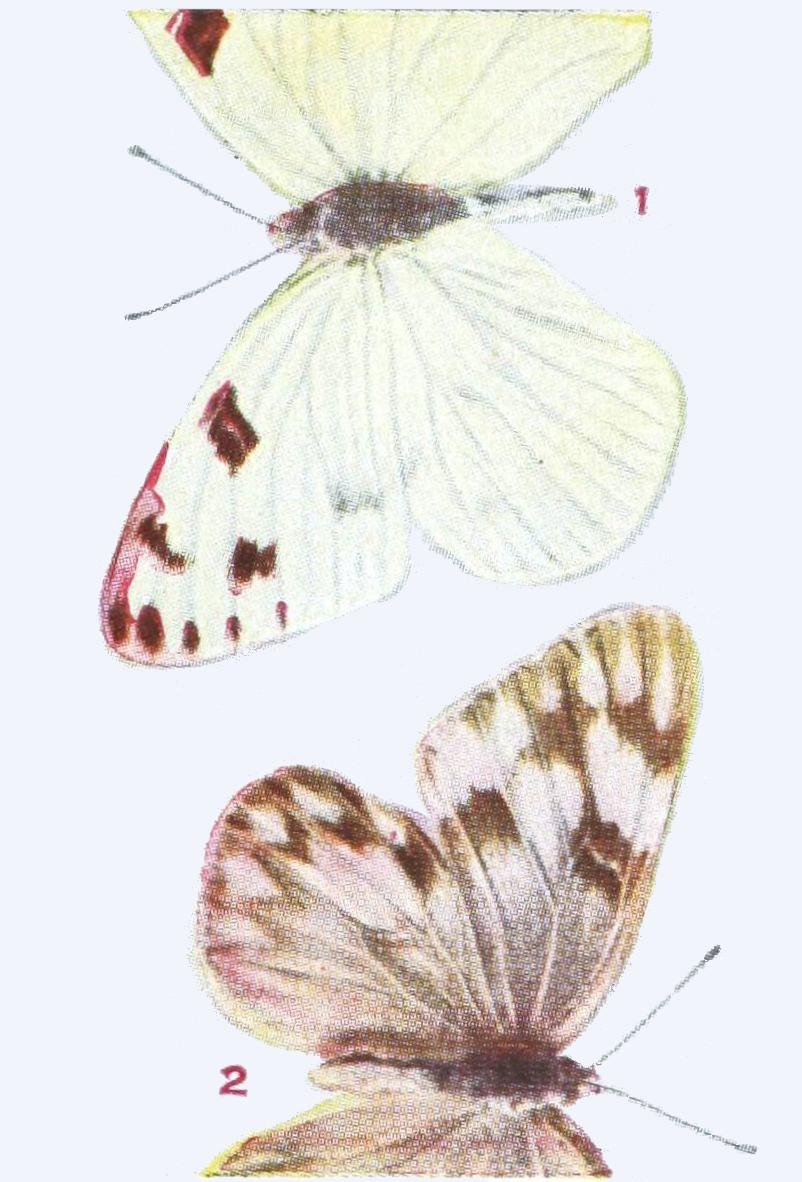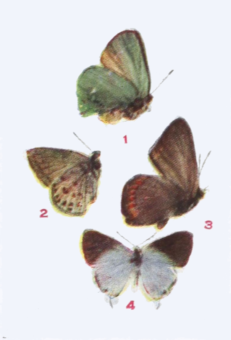 The time spent by the insect in the egg is generally short. The time passed in the larval state may be short or long. When butterflies hibernate, or pass the winter, as caterpillars, the time spent in this state is long, and especially in the case of those species which inhabit arctic regions. There are some butterflies which occur north of the Arctic Circle, and we have ascertained that these, because the summers are so short in the far north, pass two summers and the intervening winter in the larval condition, and another winter in the pupal stage, before they emerge and take wing. On the other hand, under more temperate conditions butterflies of[34] certain species may produce two or even three broods in a summer, and in subtropical or tropical lands there may be even more broods produced.