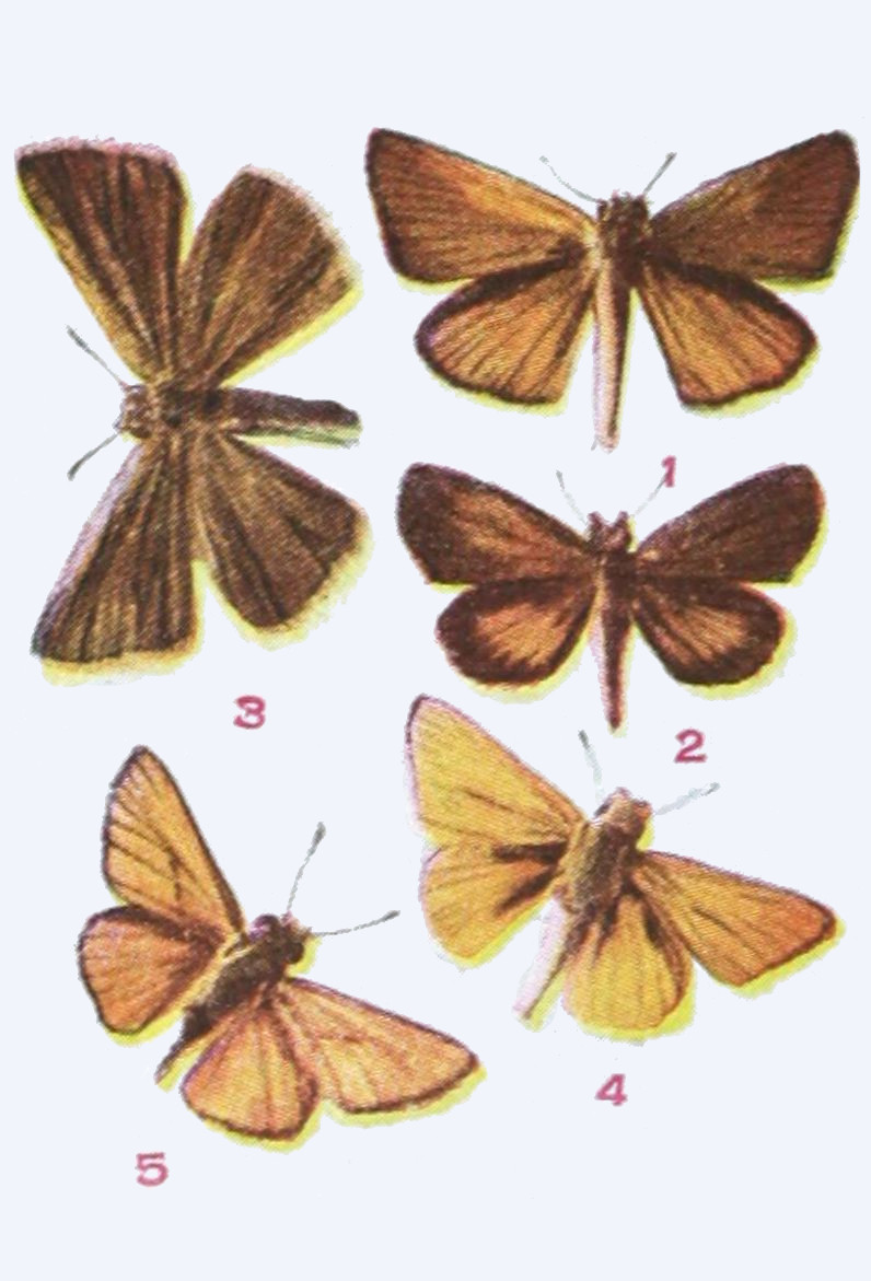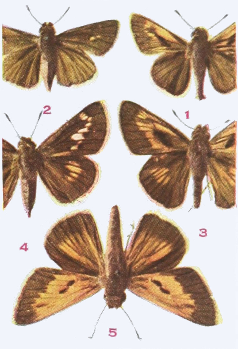 (1) Atrytone vitellius (Smith & Abbot), Plate CXLVII, Fig. 4, ♂; Fig. 5, ♀ (The Iowa Skipper).