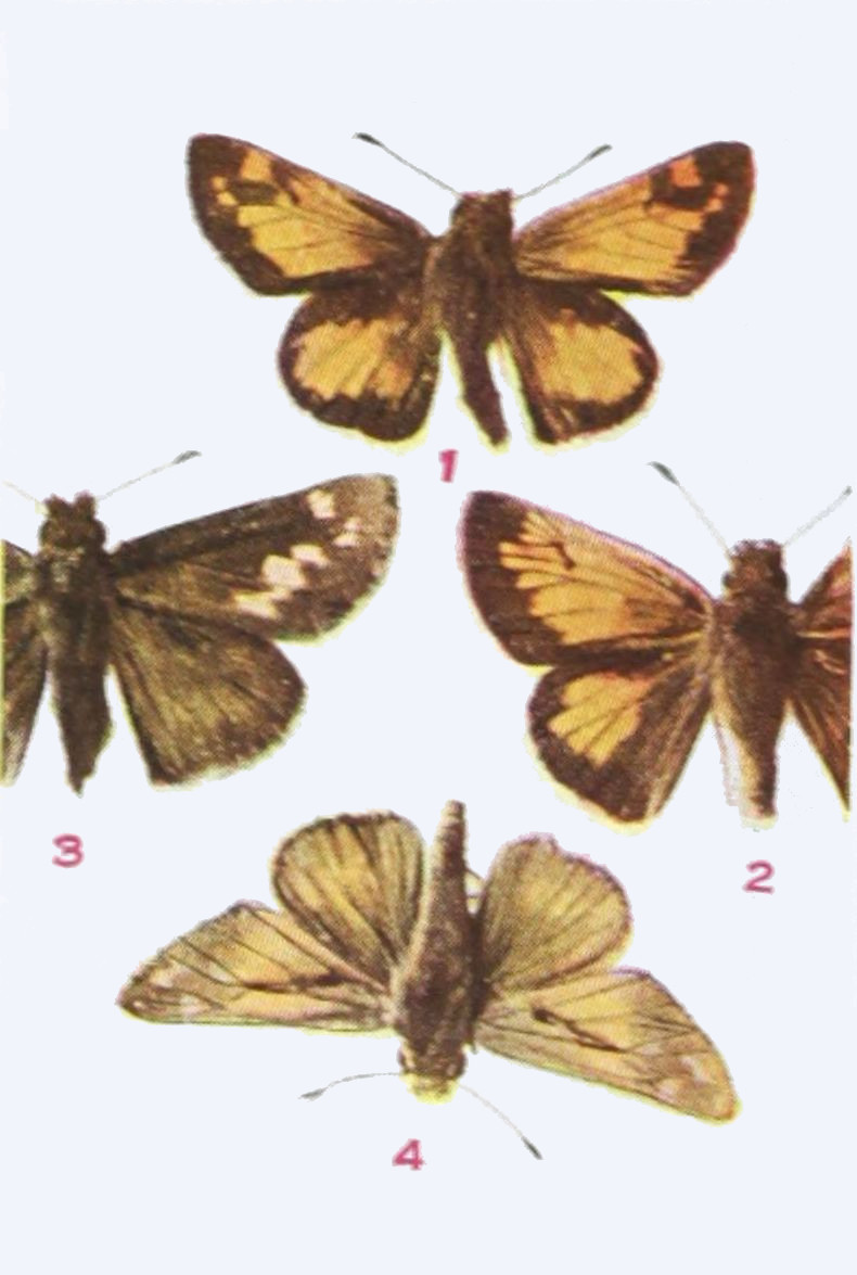(3) Atrytone hobomok (Harris), Plate CXLVIII, Fig. 2, ♂; variety pocohontas Scudder, Plate CXLVIII, Fig. 3, ♀ (The Hobomok Skipper).