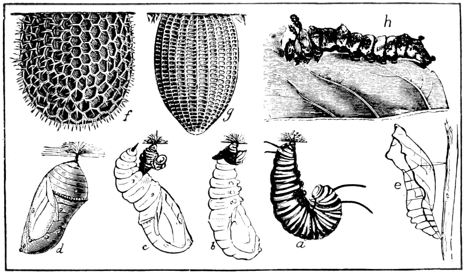 Almost all insects undergo great changes, or metamorphoses, during their existence. Butterflies furnish no exception to this statement. They exist first as eggs; then they appear as caterpillars; the third stage is that of the chrysalis; the final stage is that of the imago, or perfectly developed insect.