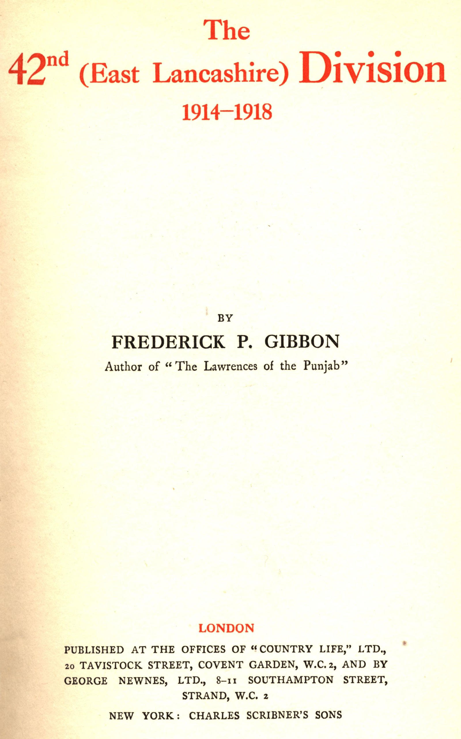 The work is an attempt to record the doings and follow the fortunes of the 42nd (East Lancashire) Division in the Great War, but nothing that can be written can adequately disclose the noble manner in which these lads preserved throughout that dogged courage and insistent resolution from which it was impossible, for those who were present, to withhold their admiration. My own four years’ experience of them has left me with the deepest feelings of pride and affection. From first to last they proved themselves to be gallant, loyal and self-sacrificing soldiers, warm-hearted, responsive and lovable men.