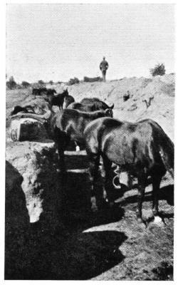 [8] One man, indeed, tried to cultivate friendship with a horned viper. He had actually tied a string to its tail—how he managed this goodness only knows!—and was showing it round when it rose in its wrath and bit him. The fact that he was near the M.O.’s tent saved him, but he was left with a “dud” finger for life. All sorts of queer pets, lizards, tortoises, praying-mantis, etc., were kept by the men when their units were stationary, and one of these—a large lizard—proved to be of a rare species, and found an honourable refuge in the Cairo Zoo. Desert mice and rats of various kinds abounded, and were often tame and amenable, but of larger animals only a few gazelles and, once, an Egyptian wild-cat, were seen. Nearly every cookhouse acquired a pet goat, the diminutive black one of the 10th Manchesters being the most admired of those. The 6th L.F. goat “joined up” at Imbros and saw service in Gallipoli as well as in Sinai.