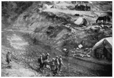 [23] One of the pack-mules, when crossing, deliberately jumped into the water, dragging his driver in. It was the second time the mule had behaved in this way. The driver got the animal and its load to the enemy’s side and, while shells and bullets were whizzing around, he admonished his charge on its folly. “This is the second ⸺ time you’ve done this,” he said. “If you fancy yourself as a ⸺ submarine, you’re ⸺ well mistaken. Coom on!”