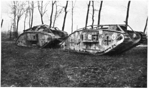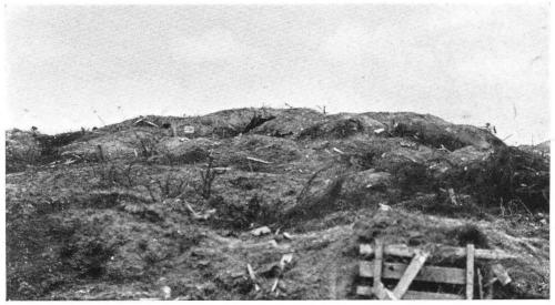 [21] One tank caught fire and had to be abandoned on the ridge east of Trescault. It carried a number of T.M. bombs, and presented a most ludicrous spectacle, hopping about like a wounded rabbit as each bomb exploded.