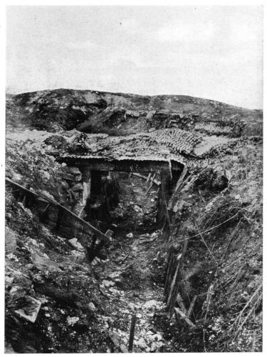 “Dawn had not quite broken, and a half moon was shining in a cloudless sky. All was as quiet as the grave when suddenly a big gun fired, and instantaneously, from one end of the horizon to the other, the barrage started.... Looking back it seemed that the sky was on fire for miles and miles, and the ground shook. In front there was one long flickering crashing line of bursting shells—a wall of fire 70 yards in front of us. What a barrage it was! I believe we could have followed it to Berlin.... A barrage is a terrifying thing to be under, as always a few men are knocked out by splinters or ‘shorts,’ but it is necessary to keep right under it and prevent the Boche putting his head up before you are on top of him. We would advance, then kneel down to wait for the barrage to creep forward, and by the light of the bursting shells I could see right down the line, and it was a wonderful sight. The men were in as straight a line as though dressed on parade, every man motionless on one knee, the moon glinting on bayonet and steel helmet. As we went forward again, the line would break up as men darted in and out of trenches and shell-holes to clear out the Boche, and then ‘back again to the line of the barrage!’ That is the secret of success.”