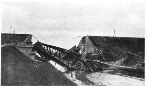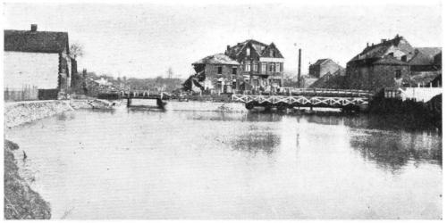 The nearest railhead was at Caudry, more than 30 miles in rear of Maubeuge, and delayed-action mines, cunningly hidden, and timed to explode on different days, continued to blow up the railway line and roads. The Motor Transport Company of the Divisional Train had served the Division well throughout the campaign, but now its heavy vehicles could not get through the narrow, congested, badly damaged tracks of the forest, and had to make a long detour through Bavay. Without transport it was impossible, even for British infantry, to keep up with the rapidly retiring enemy, who had the use of a thoroughly efficient railway system and undamaged roads, all of which were destroyed later by his rearguards. The horse transport of the R.A.S.C. succeeded in bringing up the absolutely essential supplies, and the Sappers and Pioneers made this possible, though they had to work and march both day and night to keep up with the rate of advance. In addition, the bridging equipment of the three field companies and of the N.Z. Engineers had to be brought as close up to the front as possible, and at the same time kept free from any serious risk of damage by shell fire, for there was no bridging park available to replace damaged pontoons. At 10 a.m. on November 9 the Divisional Engineers began to bridge the Sambre, and by 8 p.m. a girder bridge over the lock and a pontoon bridge over the river were open for traffic. While this work was in progress the Pioneer Battalion, assisted by a crowd of willing French civilians, had cleared away all the debris, including a large coal-dump, that had blocked the approaches to the bridges.