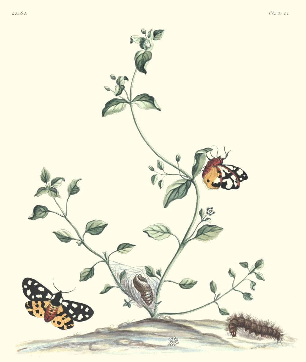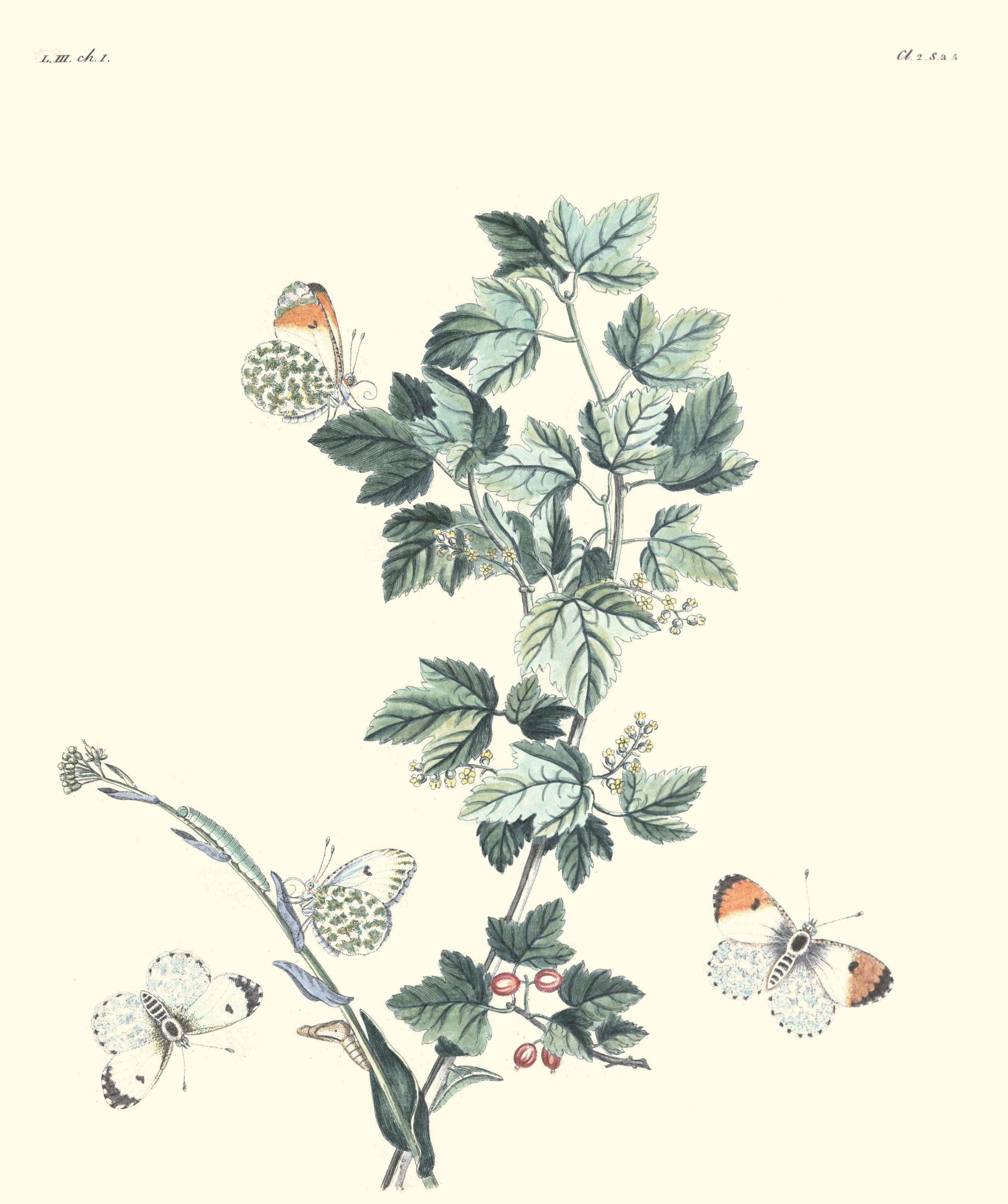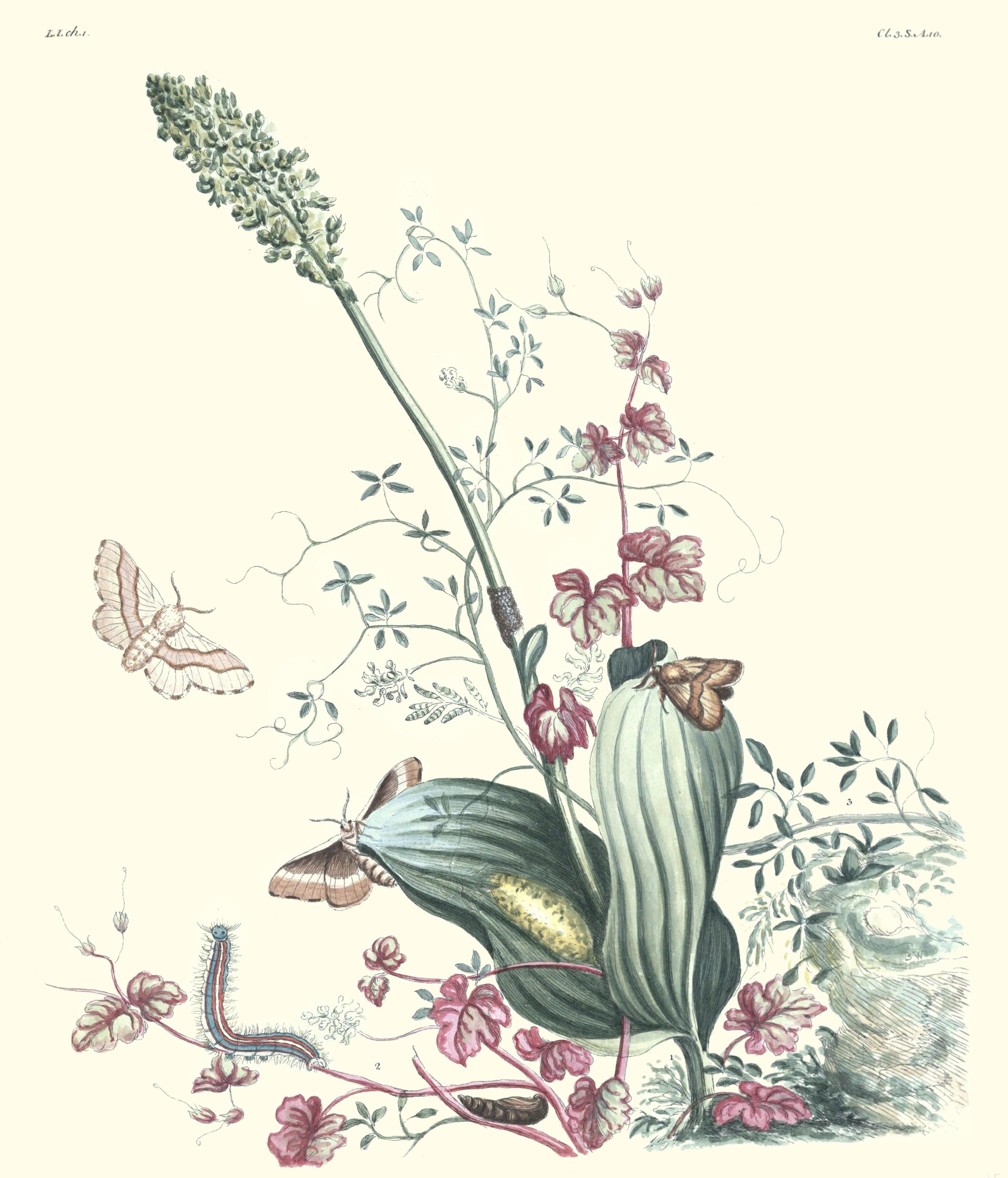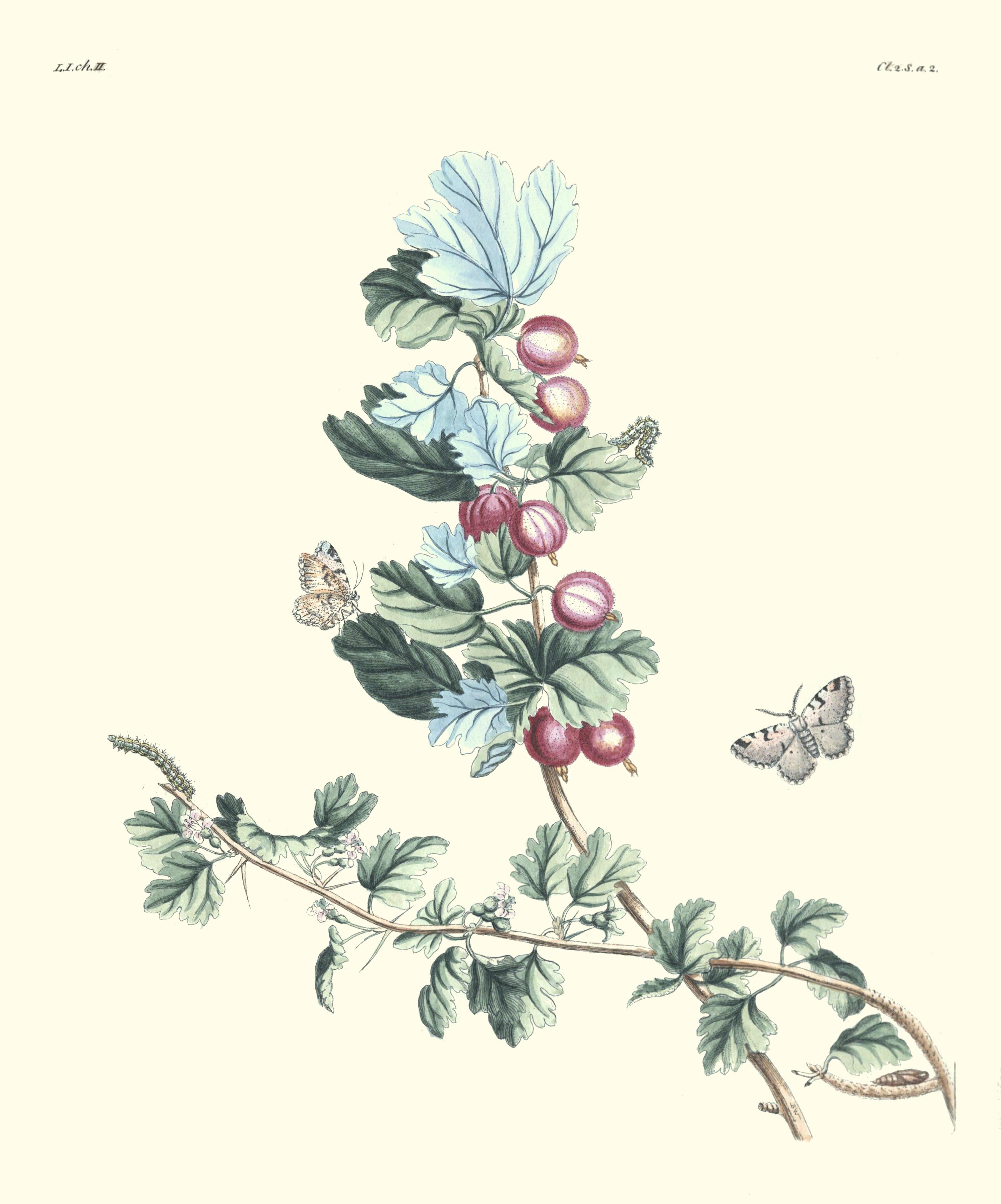 Some Ill-natured People, that love to find Fault with every Thing, have, he hears, objected against the Liberty he has taken, in giving in several of his Plates, Plants, Flowers, and Fruits, that are not in Reality the Food of the Caterpillars therein exhibited; but as the greatest Part of the Caterpillars described in this Work feed chiefly on the Oak, Elm, Black-Thorn, White-Thorn, Willow, and Nettle, all which are separately represented in different Plates, it was judged unnecessary (and would certainly have been tiresom) to repeat those Subjects, as often as different Caterpillars are presented to which they serve for Food: and therefore, instead of so doing, the Author has enriched his Undertaking with some of the most beautiful Productions of Nature in the Vegetable Kingdom: But, however, has not forgot to place the Caterpillars, in most of the Plates, on a small Specimen of the real Plant on which it feeds, as will be properly explained in the Account of each Particular Fly:—and this Care, it is hoped will be an Answer to all unreasonable Cavils.