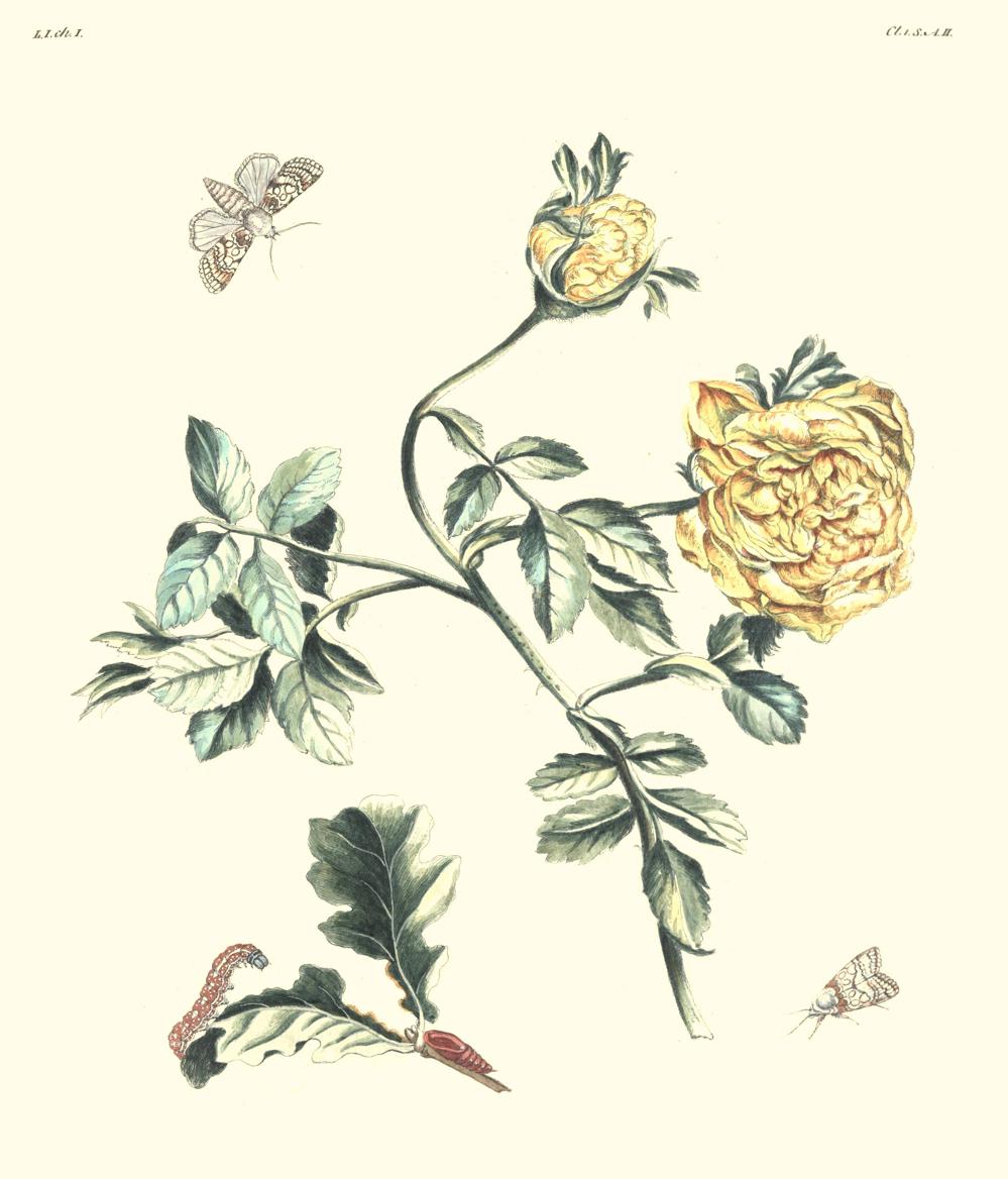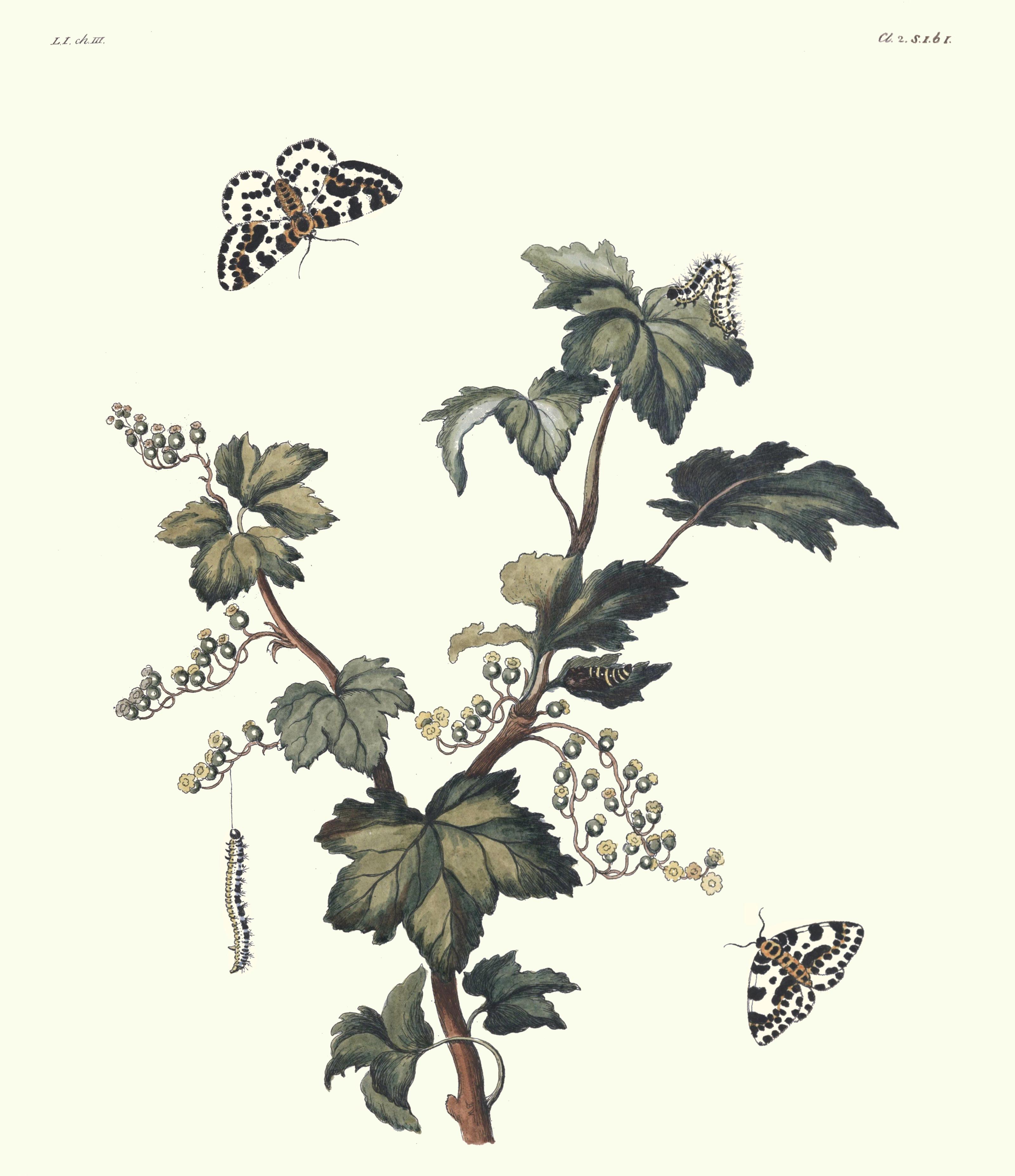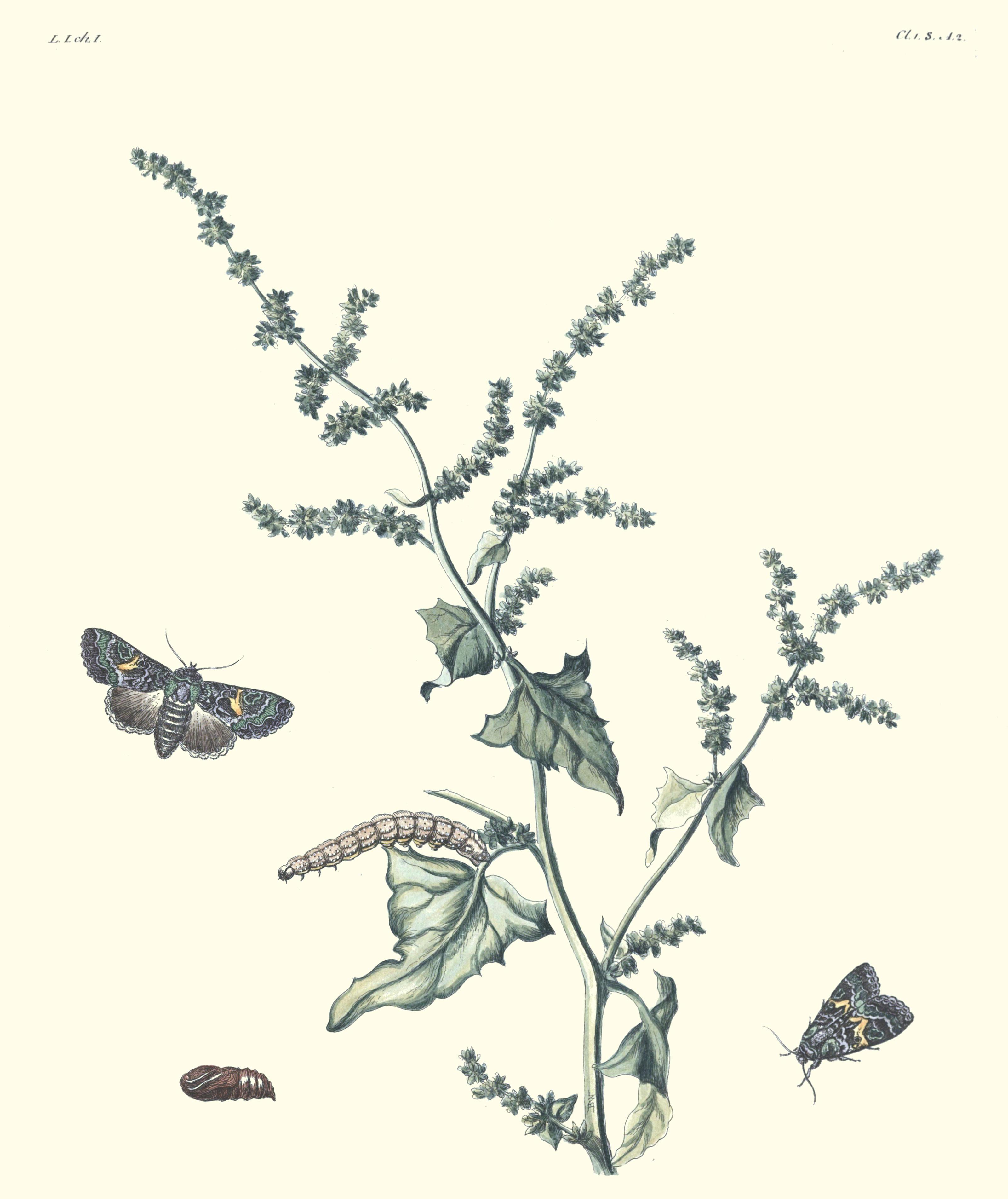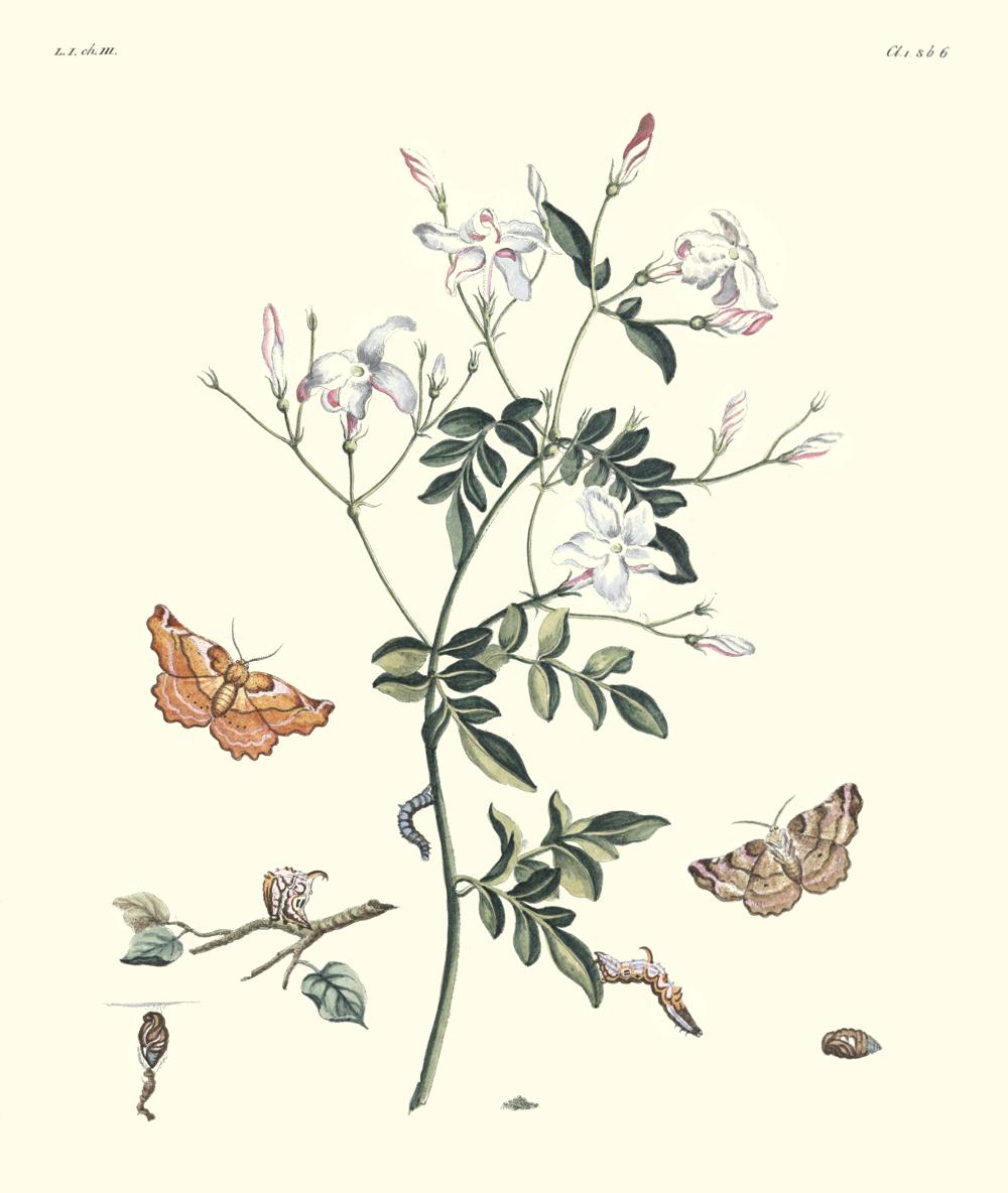 Some Ill-natured People, that love to find Fault with every Thing, have, he hears, objected against the Liberty he has taken, in giving in several of his Plates, Plants, Flowers, and Fruits, that are not in Reality the Food of the Caterpillars therein exhibited; but as the greatest Part of the Caterpillars described in this Work feed chiefly on the Oak, Elm, Black-Thorn, White-Thorn, Willow, and Nettle, all which are separately represented in different Plates, it was judged unnecessary (and would certainly have been tiresom) to repeat those Subjects, as often as different Caterpillars are presented to which they serve for Food: and therefore, instead of so doing, the Author has enriched his Undertaking with some of the most beautiful Productions of Nature in the Vegetable Kingdom: But, however, has not forgot to place the Caterpillars, in most of the Plates, on a small Specimen of the real Plant on which it feeds, as will be properly explained in the Account of each Particular Fly:—and this Care, it is hoped will be an Answer to all unreasonable Cavils.