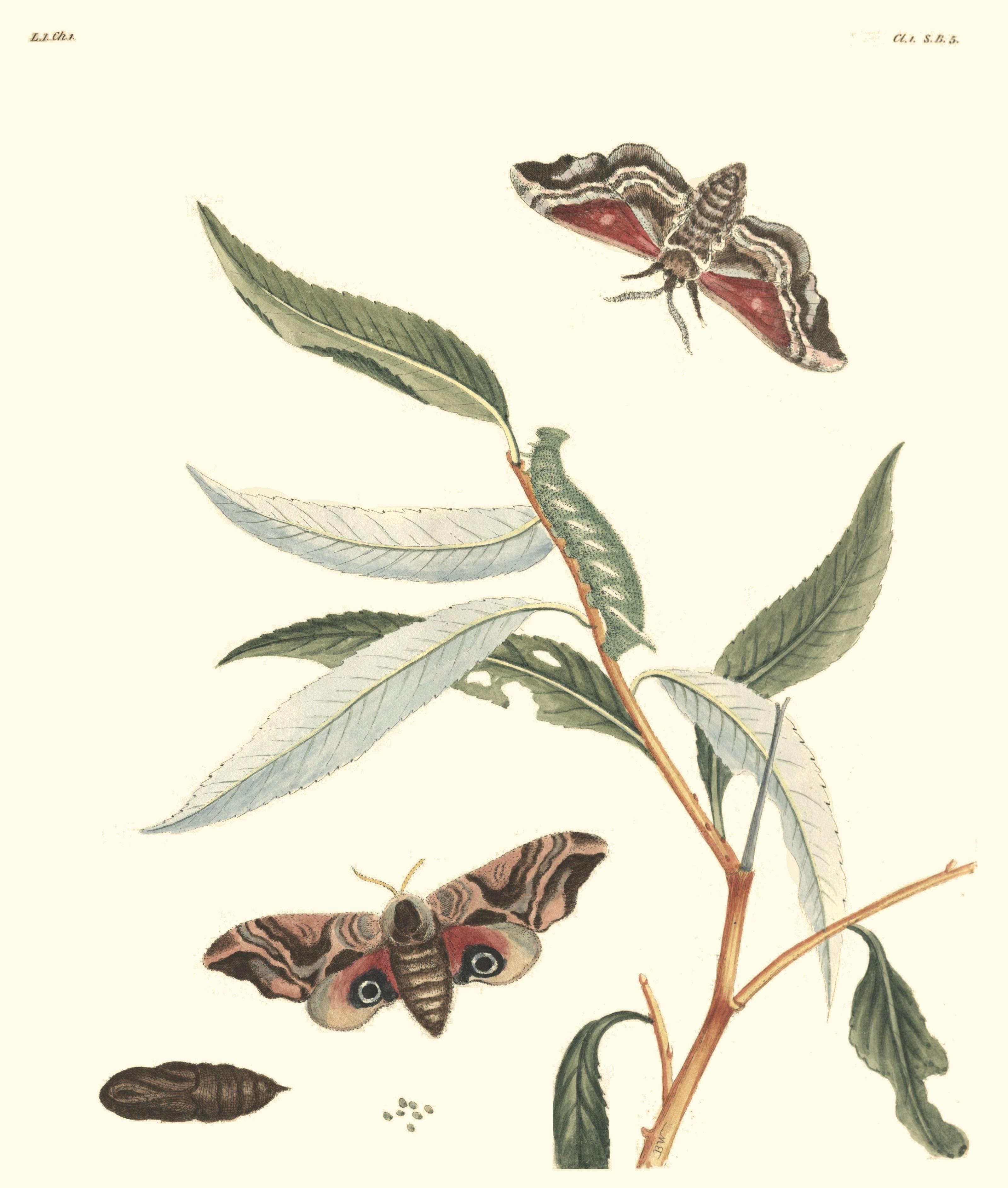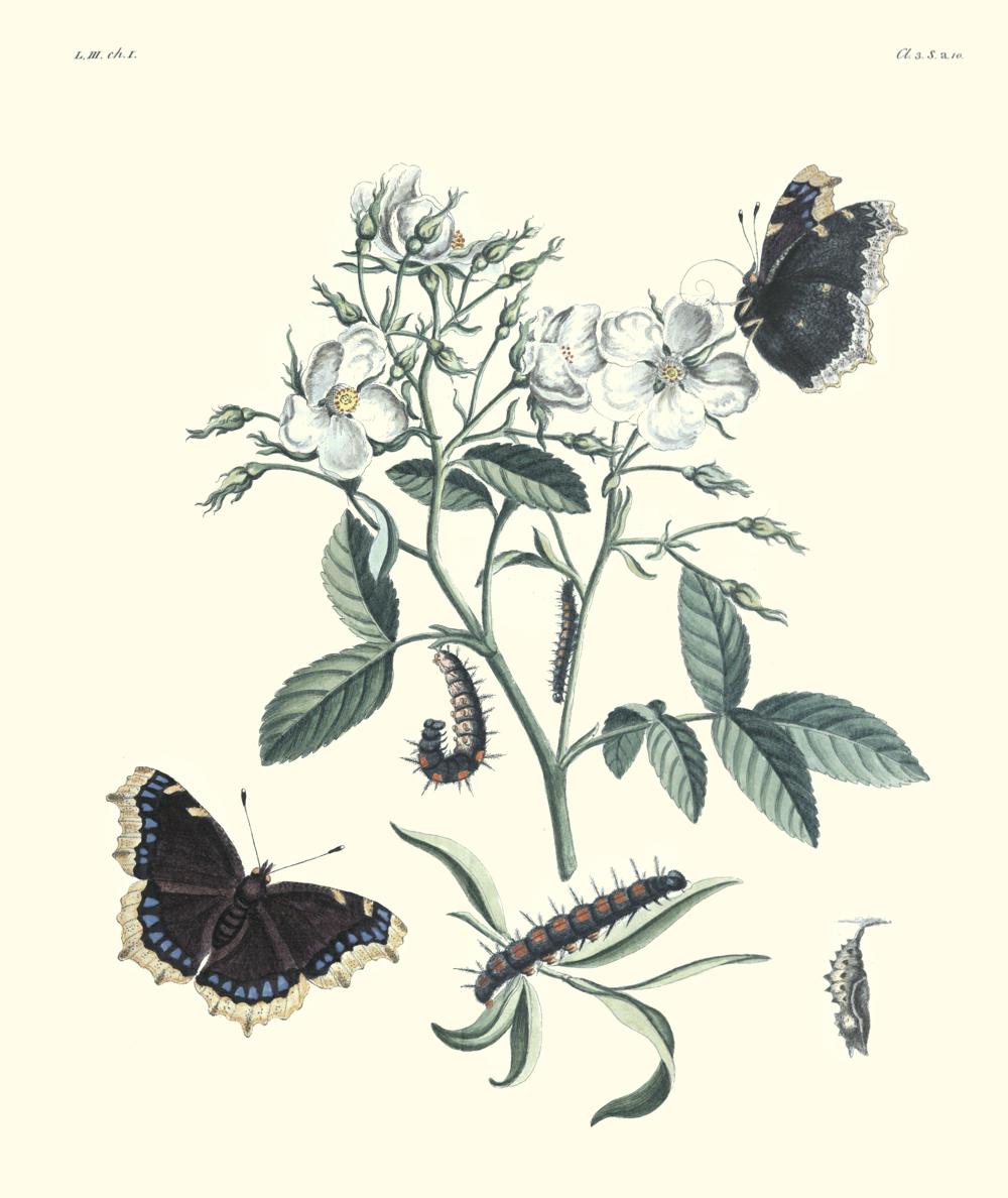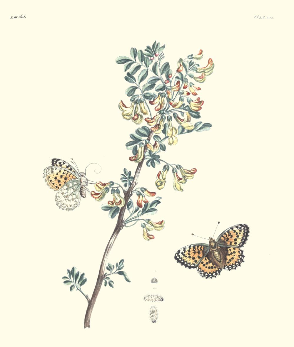 The WILLOW-BUTTERFLY. About the Middle of August, 1748, two of this Species of Butterfly were taken near Camberwell, in Surry: But in all my Practice I have never seen any of them in the Fields; so that they were look’d upon as very great Rarities. They are very common in Germany, and Mr. Rosel tells us, the Caterpillar[59] feeds on Willow, and may be found all the Summer. The Caterpillar and Chrysalis, in the Plate, are taken from a Draught by Mr. Rosel.