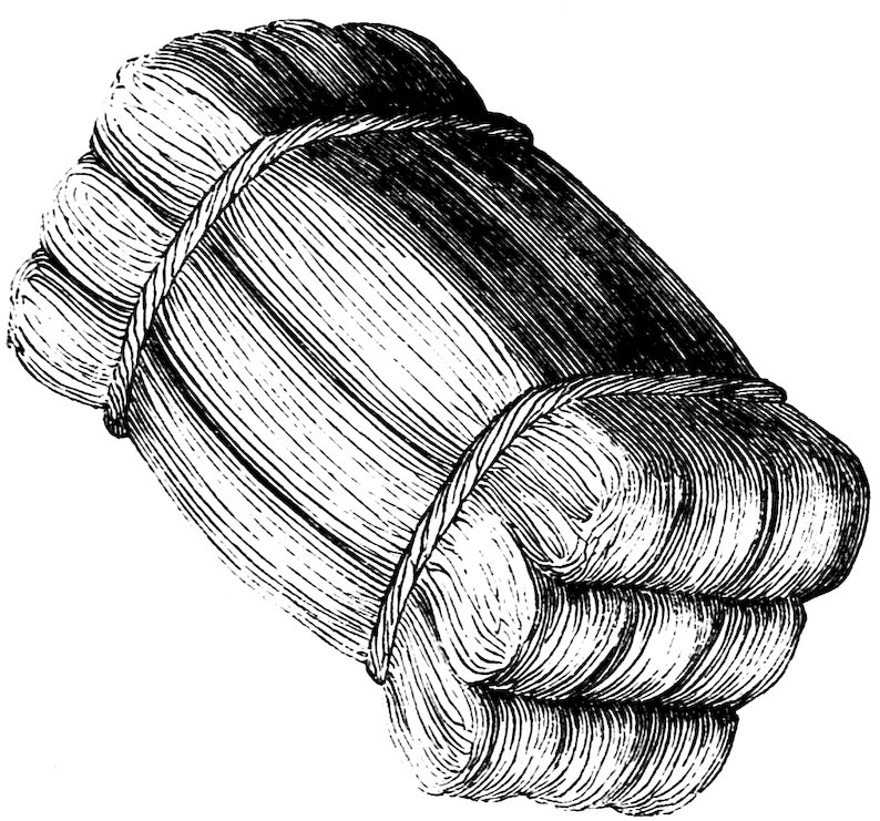 The reeled silk is made up into hanks for sale or use. The form and contents, as well as quality, of these hanks, differ greatly, as will be seen by the following wood-cuts.