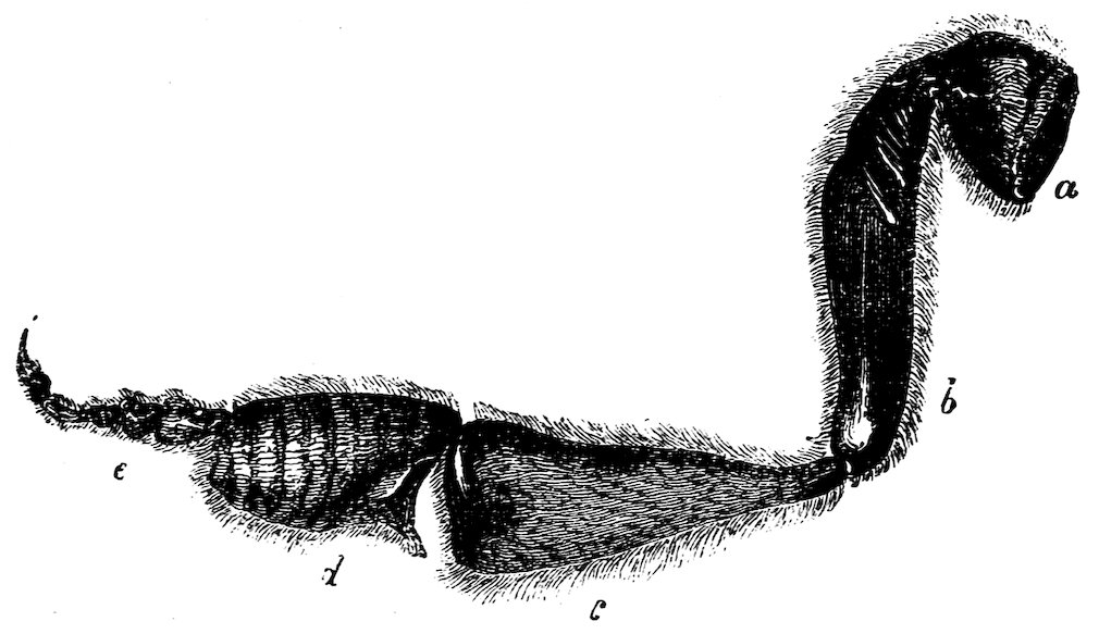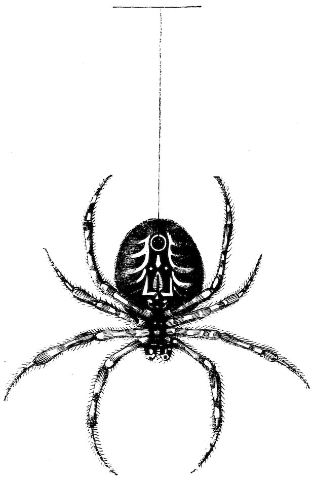 Our history of the silk manufacture among insects would be incomplete without a notice of the labours of spiders. Not only do these insects produce filmy webs to entrap their prey, but they also spin, for the protection of their eggs, a bag not much unlike the cocoon of the silkworm. At the beginning of the last century a method was discovered of procuring silk from these spiders’ bags, and of making it into several useful articles. The experiments took place in France, and it was there discovered that two species of spider in particular produced strong and beautiful silk, capable of being usefully employed. The structure of these insects was closely examined by the celebrated 56naturalist Réaumur, and he found that the silk is spun from five papillæ, or small nipples, placed in the hinder part of the body; these serve the purpose of so many wire-drawing irons, to mould a gummy liquor, which dries as it is drawn out and exposed to the air.