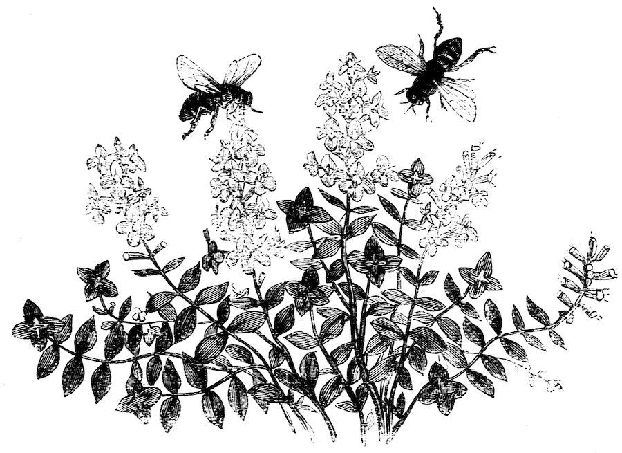 Many and various are the trees, shrubs, and plants, yielding blossoms rich in honey, which have been recommended to be cultivated in the neighbourhood of bee-hives; and no one can have watched the proceedings of the industrious inhabitants without observing that the early blossoms of the sallow and of the horse-chestnut seem peculiarly acceptable, and later in the season those of the lime; while mignonette, thyme, rosemary, lavender, and various other flowers, are assiduously visited by these diligent collectors. But the best stores of our gardens yield a scanty supply compared with the treasures of the fields, such as bean blossoms, and clover blossoms. The latter 100crop (especially the white Dutch clover called honeysuckle) is so rich in sweet juices, that when there is plenty of it, a good supply of honey is also pretty certain.
