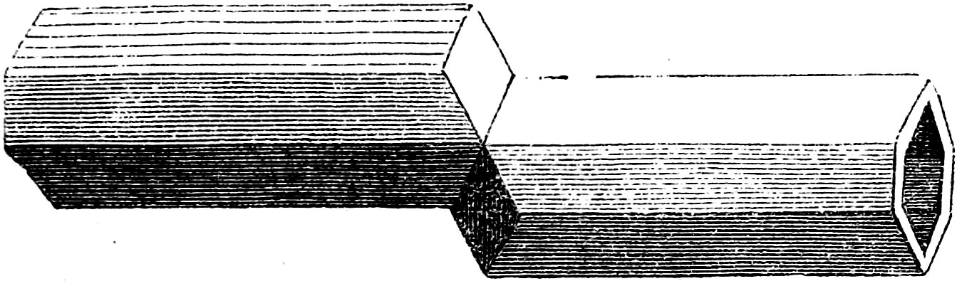The cells themselves, consisting of six-sided tubes, are next constructed. The bees commence by making the edges of the cavities of equal height, so that all the margins of the cells offer an uniformly level surface. The sides are heightened in 87an order similar to that which the insects follow in finishing the bottoms of the cells; and the length of these tubes is so perfectly proportioned, that there is no observable inequality between them. It is to be remarked, that though the general form of the cell is hexagonal, or six-sided, that of those first begun is an irregular pentagon, the side next the top of the hive, and by which the comb is attached, being much broader than the rest; whence the comb is more strongly united to the hive than if these cells were of the ordinary shape.