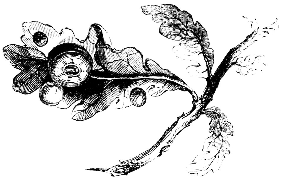 How it is that the different species of gall-fly 153should produce such varied results, and why one excrescence should be the oak-apple, another the spangle, a third the artichoke, and a fourth the nut, is indeed a mystery. But that these small insects do really produce the excrescences in question, is an ascertained fact, and a most important one in the commercial world.