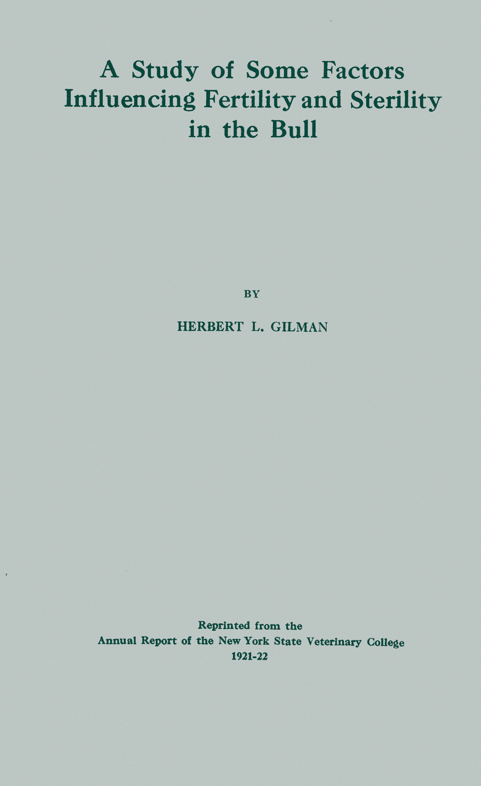 The purposes of the present work have been: (1) to summarize the work so far done on the subject, (2) to review briefly the known facts throwing light on the anatomy and physiology of the male genital organs, (3) to carry our systematic studies upon the pathology and bacteriology of the genital tract of the bull, and (4) to ascertain if possible whether the bull is a disseminator of those infections which interfere with reproduction in the female.
