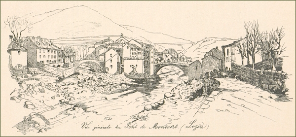 Juste sur le pont de Langogne la pluie qui menaçait depuis longtemps se mit à tomber. Ce fut la bienvenue qu’il reçut en entrant dans le Gévaudan.
