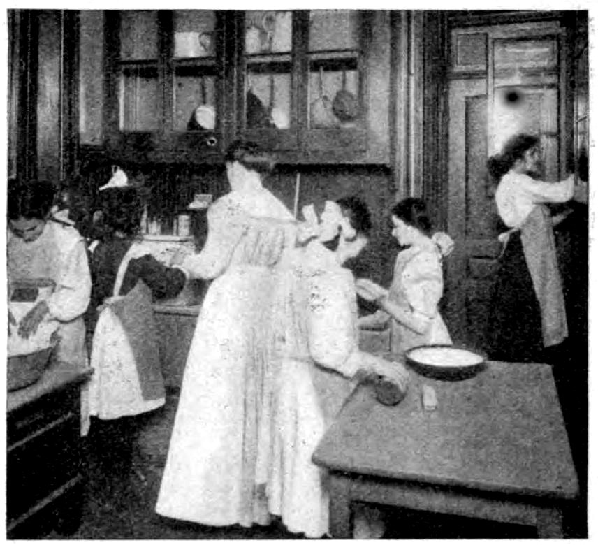 The 19,000 co-operating families receive as their share of the profits 12 per cent of the money they pay for bread, 6 per cent of what their groceries cost them and 5 per cent of the purchase price of their clothing. Among the protective features are an employment bureau for men and women, a pharmacy and a corps of thirteen physicians rendering free service to all members of one year’s standing, and a sick benefit society with 8,000 members. Singing and ethical classes are maintained for children and a well-trained orchestra and choral club for adults. Small halls adequately provide for the meetings of the trade sections, and a great auditorium, seating 2,436 persons, rallies the festival gatherings and supplies room for political mass meetings.