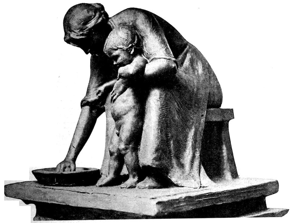 It is interesting to know that Miss Eberle worked out the composition for the White Slave four years ago; but the actual work of modelling was done in the four weeks’ interval between the time she was invited to send some of her work to last winter’s International Art Exhibition and its opening. Until then, she had felt that the time had perhaps not come when such a group would be received except as an unwelcome effort toward sensationalism. It is the first of several such interpretative subjects which she has in mind, and which, if worked out in an equally sincere spirit, should be big in social significance.