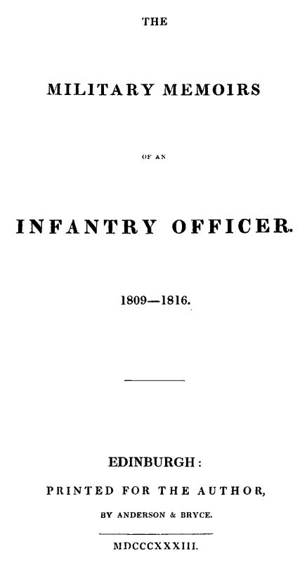 The Work now submitted to the Public, contains an account of the Author's Campaigns during the most memorable period of the late French wars. It pretends to no eminence as a literary composition; but the Author trusts, that it will not be found wanting in accuracy of detail, as to facts falling under his own notice. He trusts that no one who opens it in hope of being amused, will shut it disappointed; and he sincerely hopes that the junior members of his own profession will find in it something which may prove useful to them when they are called upon to suffer hardships—to encounter dangers—and to perform duties similar to those recorded in the following pages.
