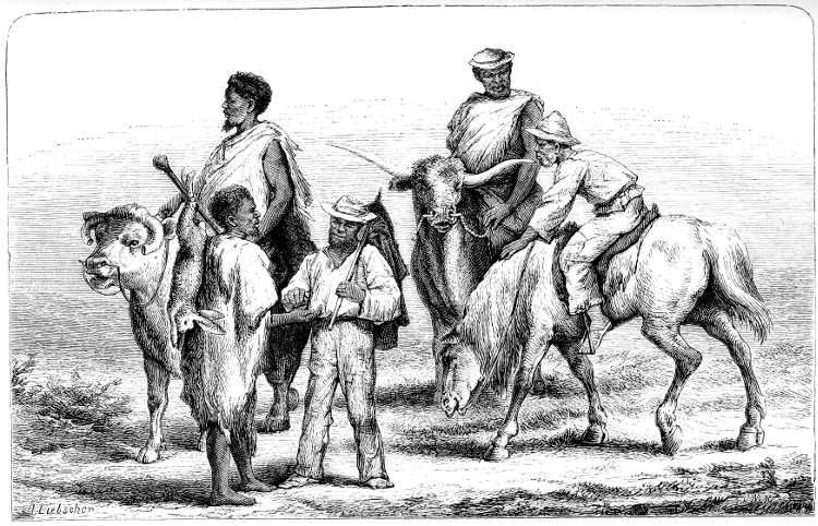 | My travelling-companions—Departure from the Diamond-fields—The Vaal River and valley—Visit to Koranna village—Structure of Koranna huts—Social condition of the Korannas—Klipdrift—Distinction between Bechuanas and Korannas—Interior of a Koranna hut—Fauna of the Vaal valley—A bad road—A charming glen—Cobras and their venom—Ring-neck snakes—The mud in the Harts River | 93 |