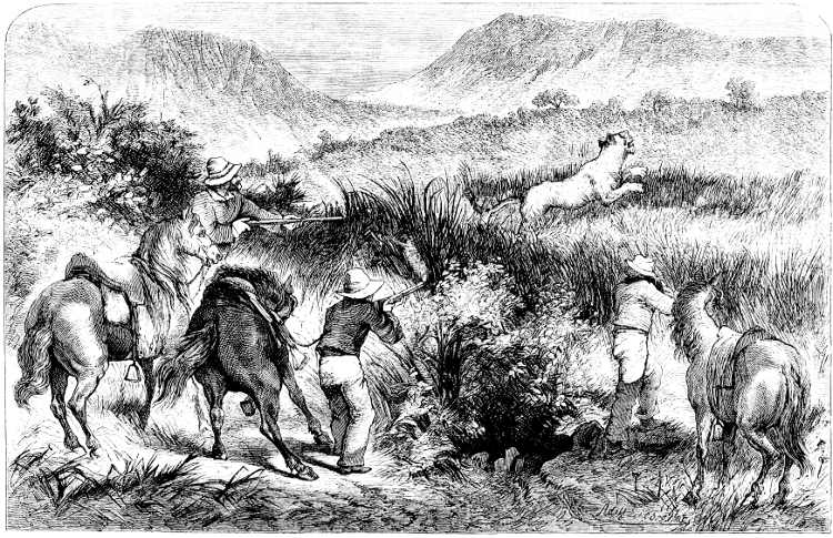 | Departure from Musemanyana—The Quagga Flats—Hyæna-hunt by moonlight—Makalahari horsemanship—Konana—A lion on the Sitlagole—Animal life on the table-land—Gnu-hunt at night—A missing comrade—Piles of bones—Hunting a wild goose—South African spring-time—Molema’s Town—Mr. Webb and the Mission-house—The chief Molema—Huss Hill—Neighbourhood of Moshaneng—Illustrious visitors | 252 |