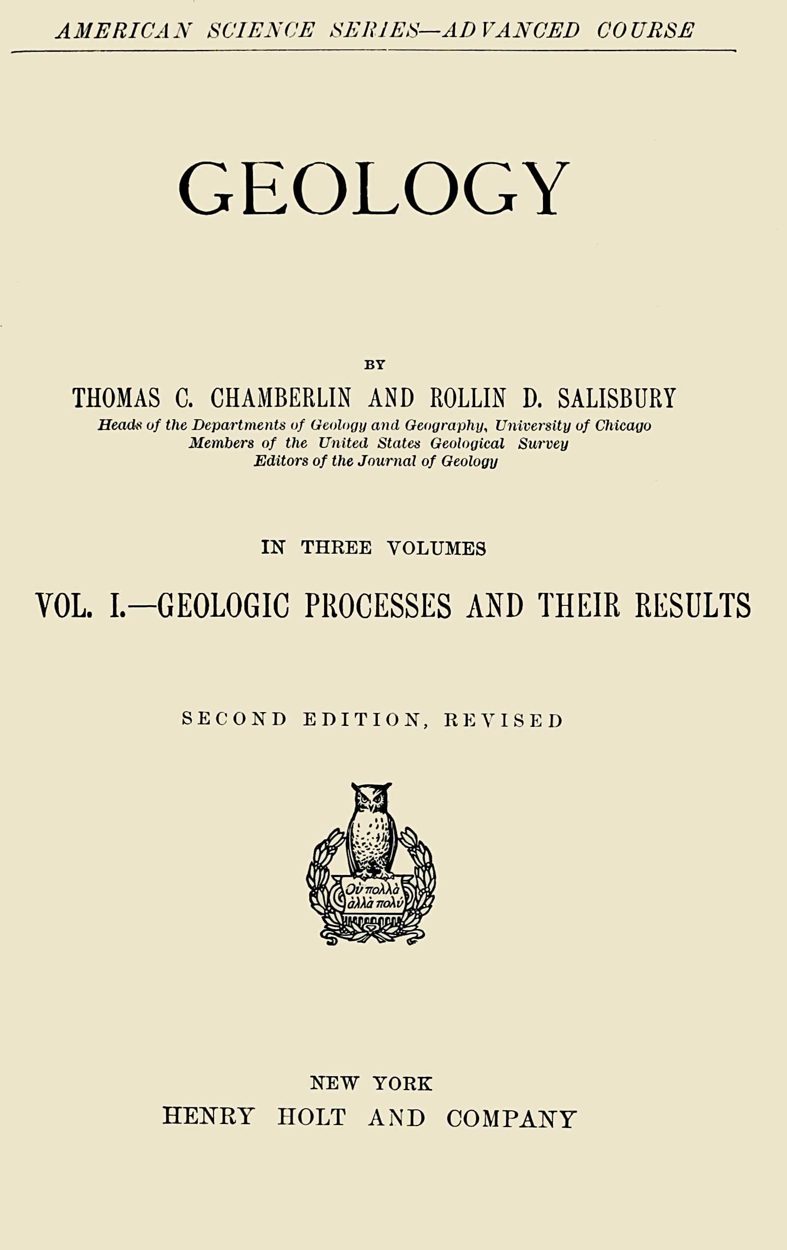 VOL. I.—GEOLOGIC PROCESSES AND THEIR RESULTS