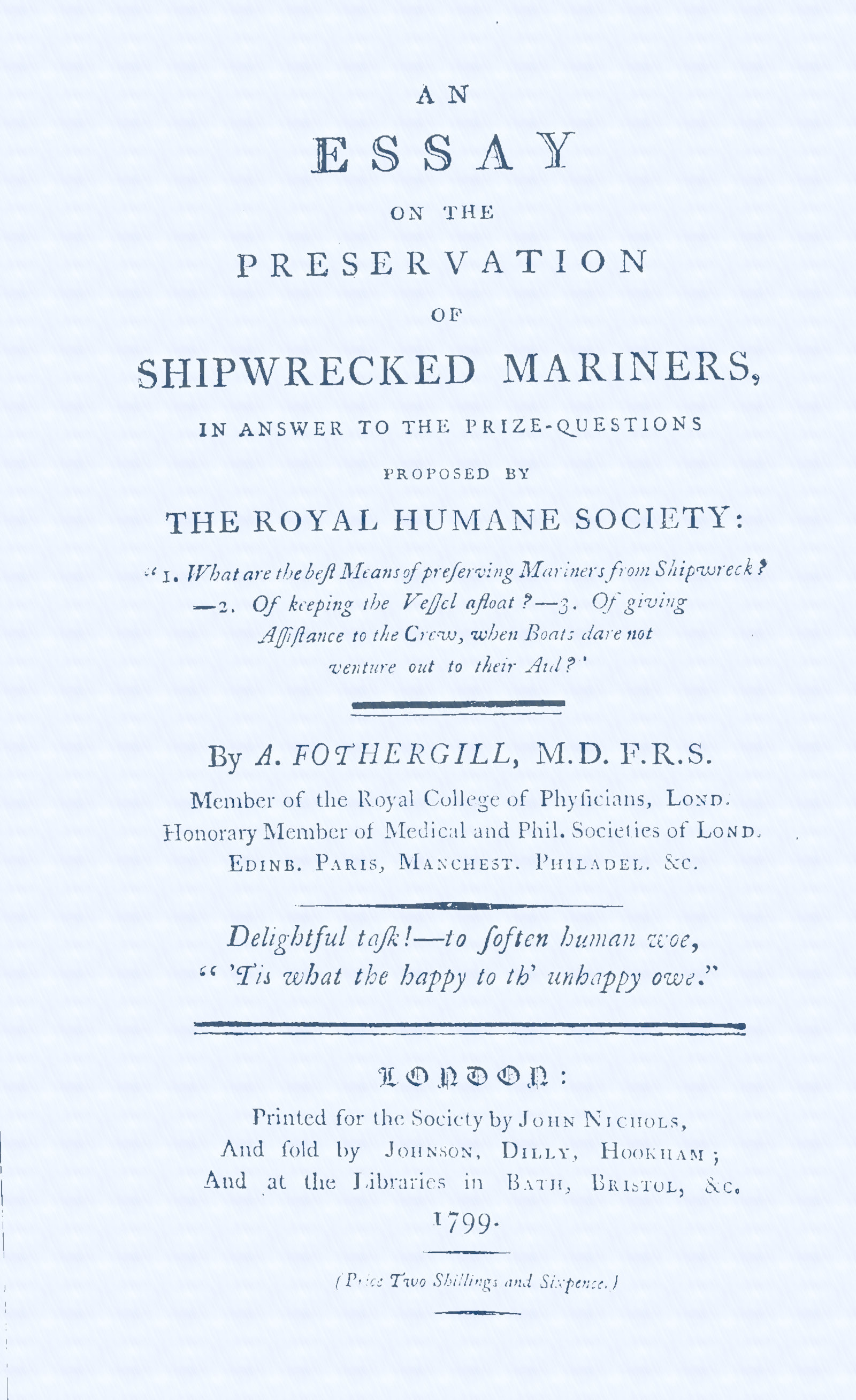 The present subject, therefore, involving the lives of thousands of our fellow-subjects, and property to an amount almost incalculable, is perhaps one of the most momentous that can, at this time, engage our attention. When, under the signature of a Life Director, I first submitted this question to your consideration, as perfectly congenial to your life-saving institution, it was chiefly with a view to call forth the abilities of ingenious writers and experienced navigators. If the present Essay should ultimately contribute to so important a purpose, by opening a new path of inquiry, I shall think the labour well bestowed.