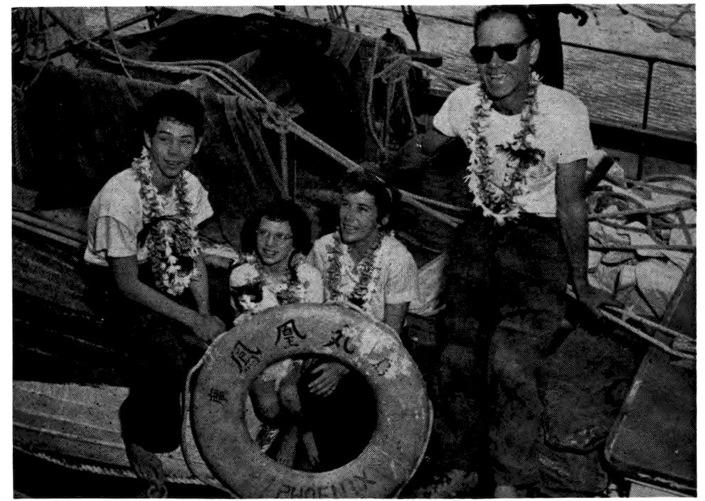 It was our plan to leave in about a month; it was not until almost two years later that we were able to make the long haul back to Hiroshima. The Phoenix was not quite idle during this period—she sailed over 6,000 miles during 83 days at sea—but our sailing was of a different nature than that of a casual family cruise and does not enter into this account. In brief, we sailed into the Bikini nuclear bomb test area, then to Kwajalein, in the Marshalls, and finally—without the Skipper and Jessica aboard—back to Honolulu. But, as I say, that is another story (told in The Forbidden Voyage).