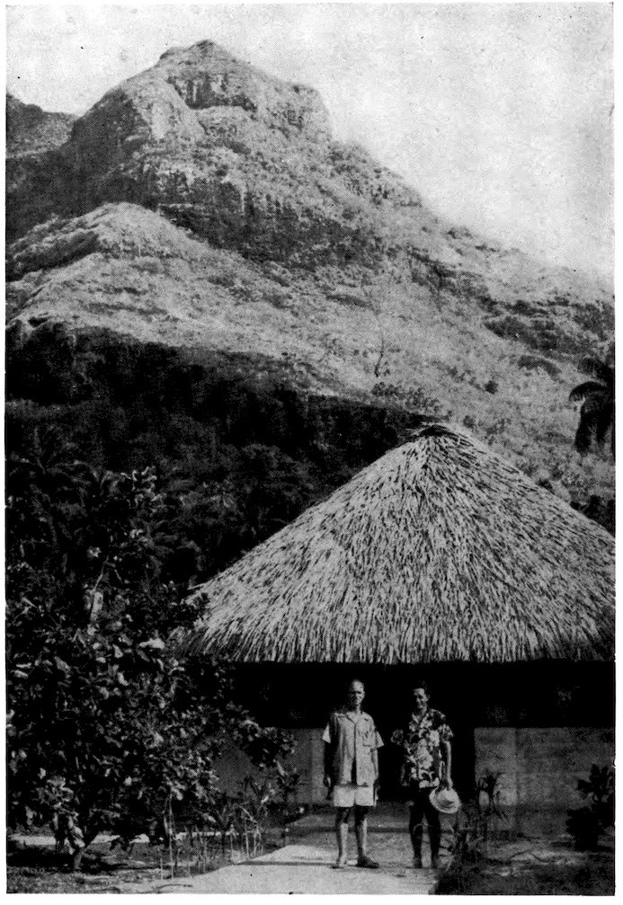 The French government maintains a small office here, so we went ashore to present our credentials. All was quickly taken care of, and once we had mailed our long-delayed letters we were free to explore at will. As English-speaking visitors to the island have done for decades, we gravitated to the unofficial clubhouse of the renowned trader, Bob McKittrick, a Britisher who had jumped ship in the Marquesas some forty years before and had never left. He operates a small store, but the commodity for which his trading post is most famous is sociability. We spent many hours on Bob’s front porch, swapping yarns with other visitors or, better, listening to Bob’s own tales, of which he had an endless store.