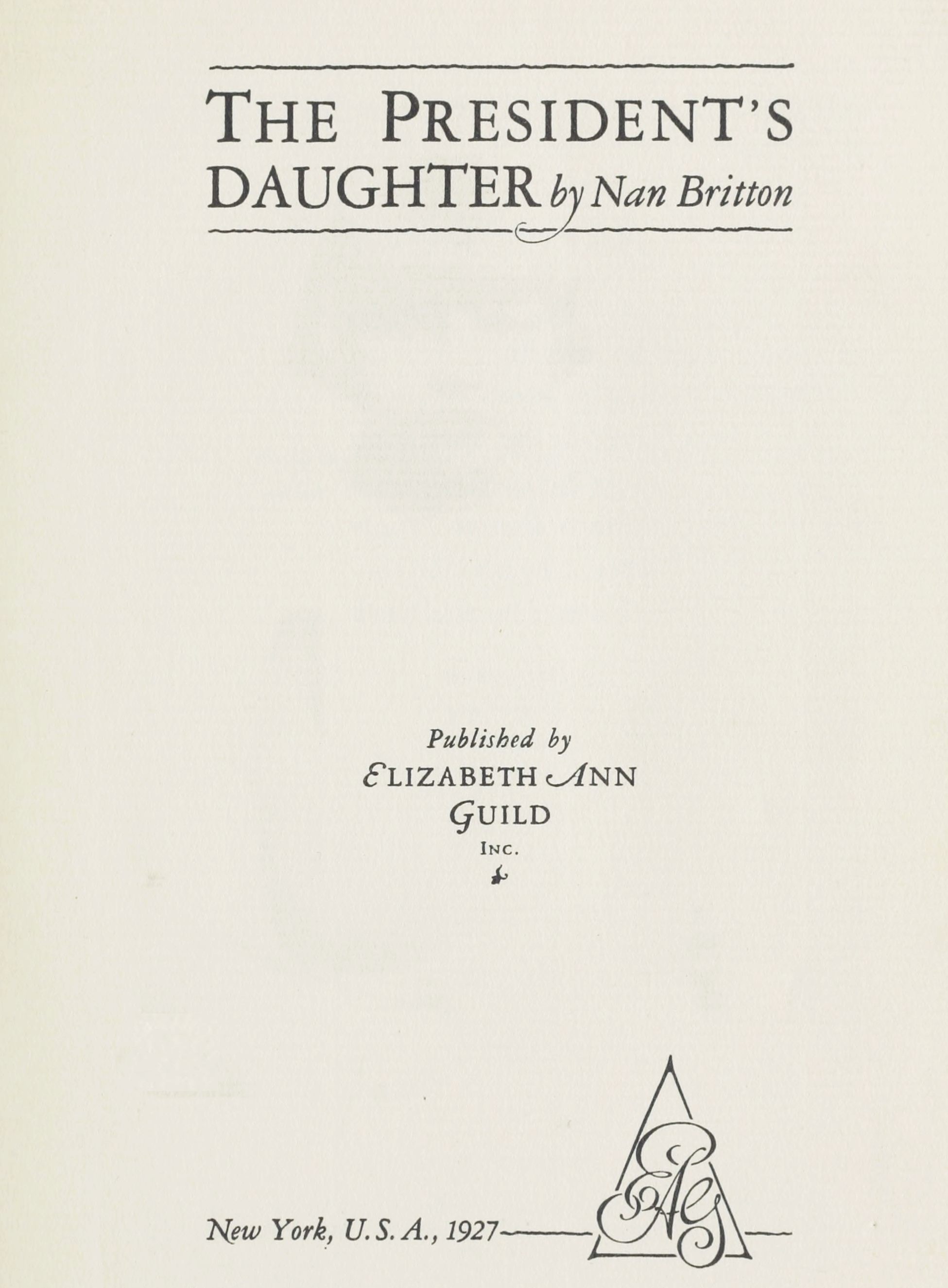 The author early sought legal counsel regarding the use of the letters from which she has quoted in this book, and others unmentioned by her. She was advised that the copyright of these letters remains with those who wrote them and she has therefore been obliged by law to paraphrase them or quote only partially. The originals of all these letters from President Harding, Mrs. Ralph T. Lewis (Abigail Harding), Mr. Heber Herbert Votaw, Mrs. Heber Herbert Votaw (Carolyn Harding), Tim Slade (as he is called in this book), Hon. James M. Cox, Democratic nominee for President in 1920, Mr. C. E. Witt of the Picture Publicity Bureau of the Republican National Committee during the Harding Campaign, and others, are in the possession of her publishers and may be read by any persons whose request appears justified.