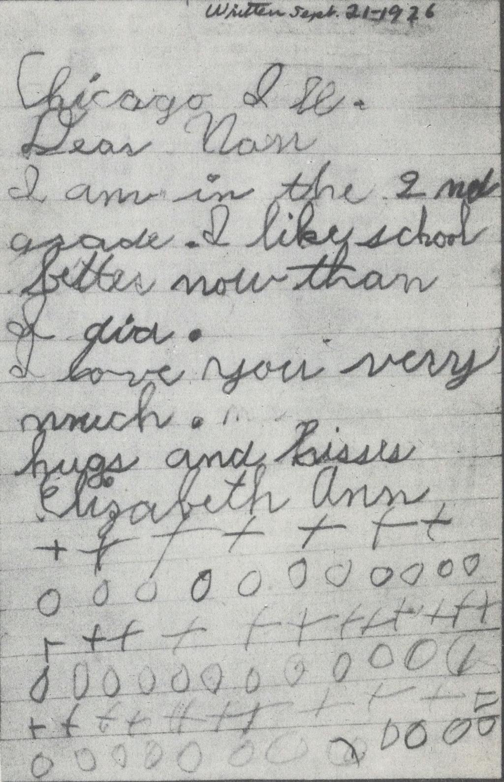 On April 30th, after having despatched the letter to Tim Slade, I received, upon my return home that evening, a small package from Miss Harding. It contained a bracelet I had left on her dressing-table in Marion, and wrapped around the bracelet were two $20 bills. Having had so much difficulty over the $40 which I did not owe, and the $40 money order which Miss Harding had sent me for railroad fare to Marion and which I had failed to endorse, with the subsequent distress of not being able to cover my $15 check to Tim, I sighed with humorous appreciation when I perceived another $40! But I was indeed grateful for any amount she saw fit to send. Immediately, under the same date, I sent her a letter of thanks. In this letter I quoted liberally from one received from my sister Elizabeth. My sister had written of their own financial difficulties, and how she and her husband planned to be in Chicago that summer, both working. They were not planning upon taking Elizabeth Ann unless I wrote that I myself could not keep her.