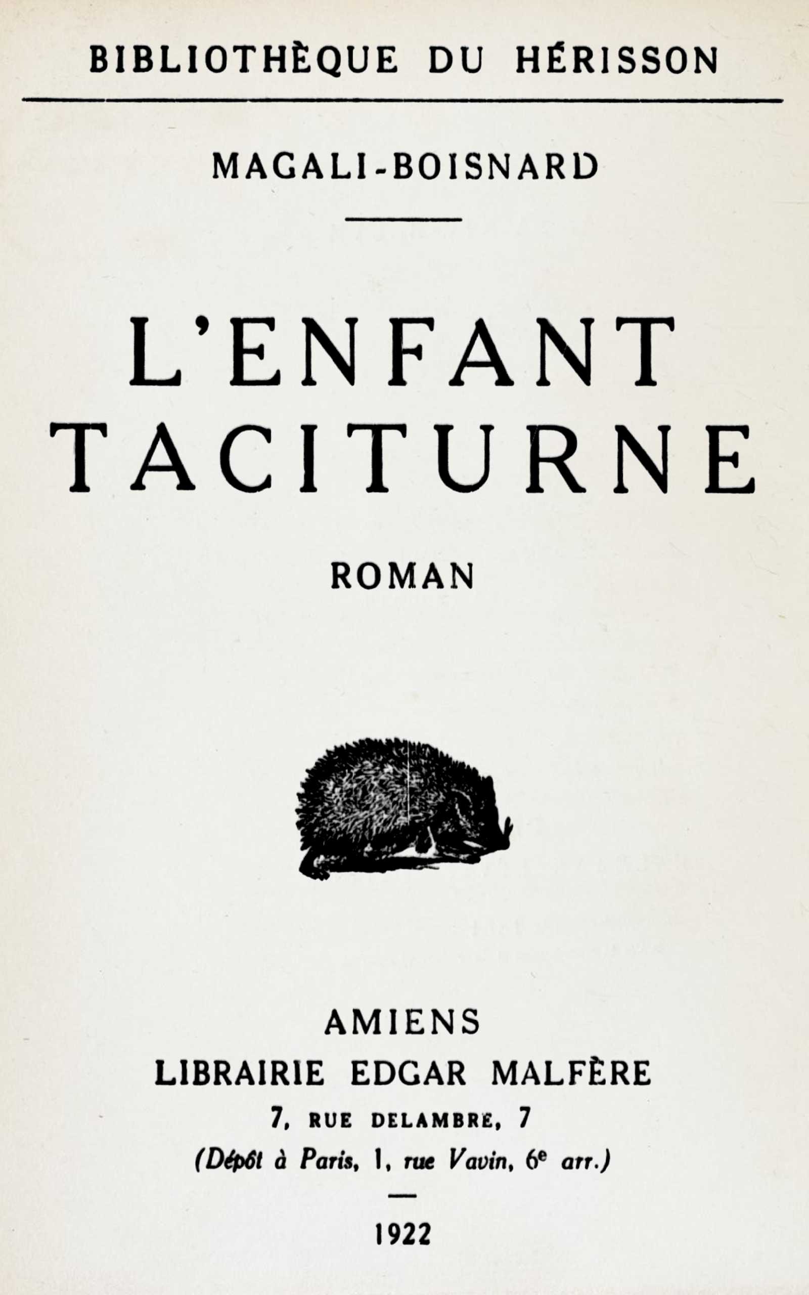 Au père et à la mère de l’enfant taciturne, tendrement.