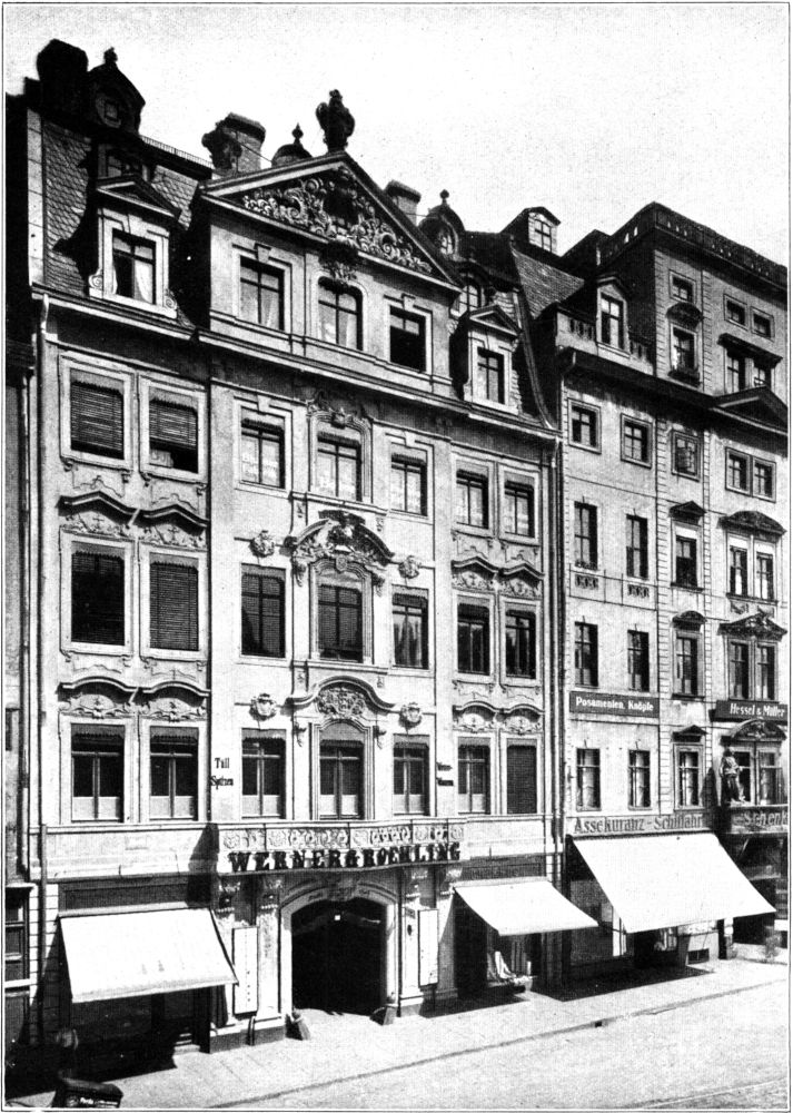 So hat es eine besondere Begründung, gerade an dieser Stelle auf die geschichtliche und ästhetische Bedeutung der Leipziger Häuser hinzuweisen, die zu[253] allem übrigen bisher auch kunsthistorisch weit weniger bekannt waren, als es ihr Wert verdiente[2].