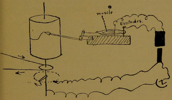 Turning once more to the present day, we will conclude with a brief glance round a physiological laboratory, and see by what methods the physiologist is preparing future surprises. The chemical department first claims our attention. The imports and exports of animals are carefully balanced, and the changes produced in the food examined. The animal is enclosed in an airtight chamber, air of known composition being pumped into it, and the air which escapes analyzed. The animal most used for this experiment is man himself, since he will take rest and exercise to order, the latter usually on the treadmill, by which it can be also measured, and can be relied upon not to while away the tedium of his imprisonment by gnawing holes in the walls or upsetting his food.